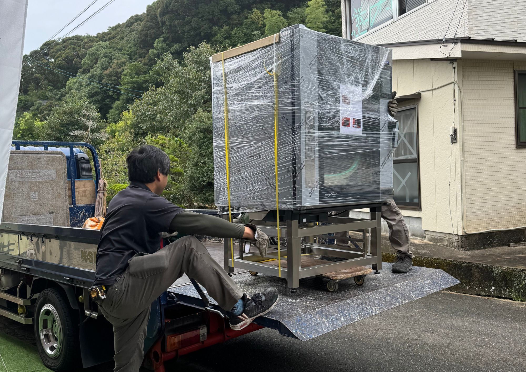 まずは、大きなオーブンが来ました!なんと、従来の6倍の量が焼けるオーブンです。