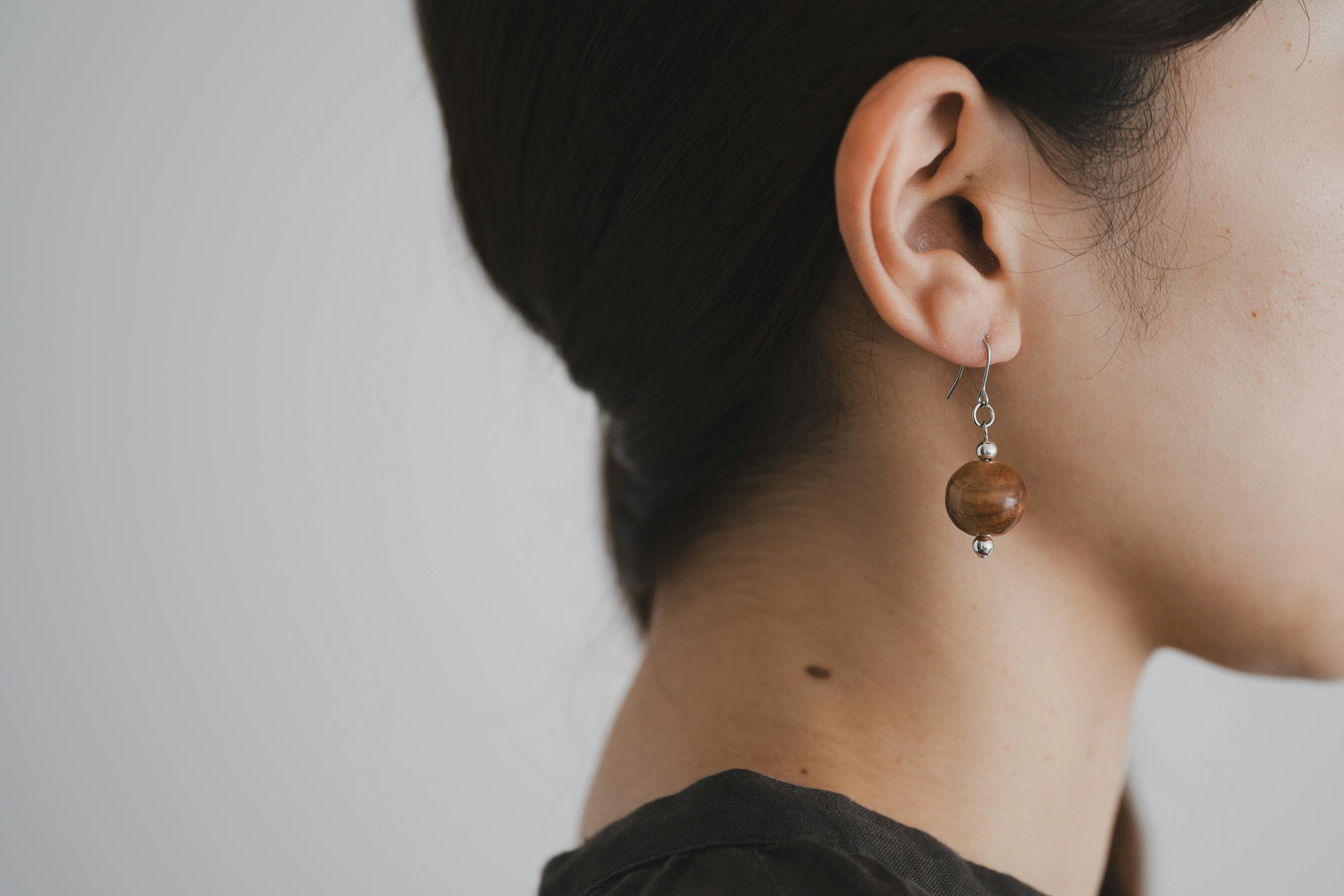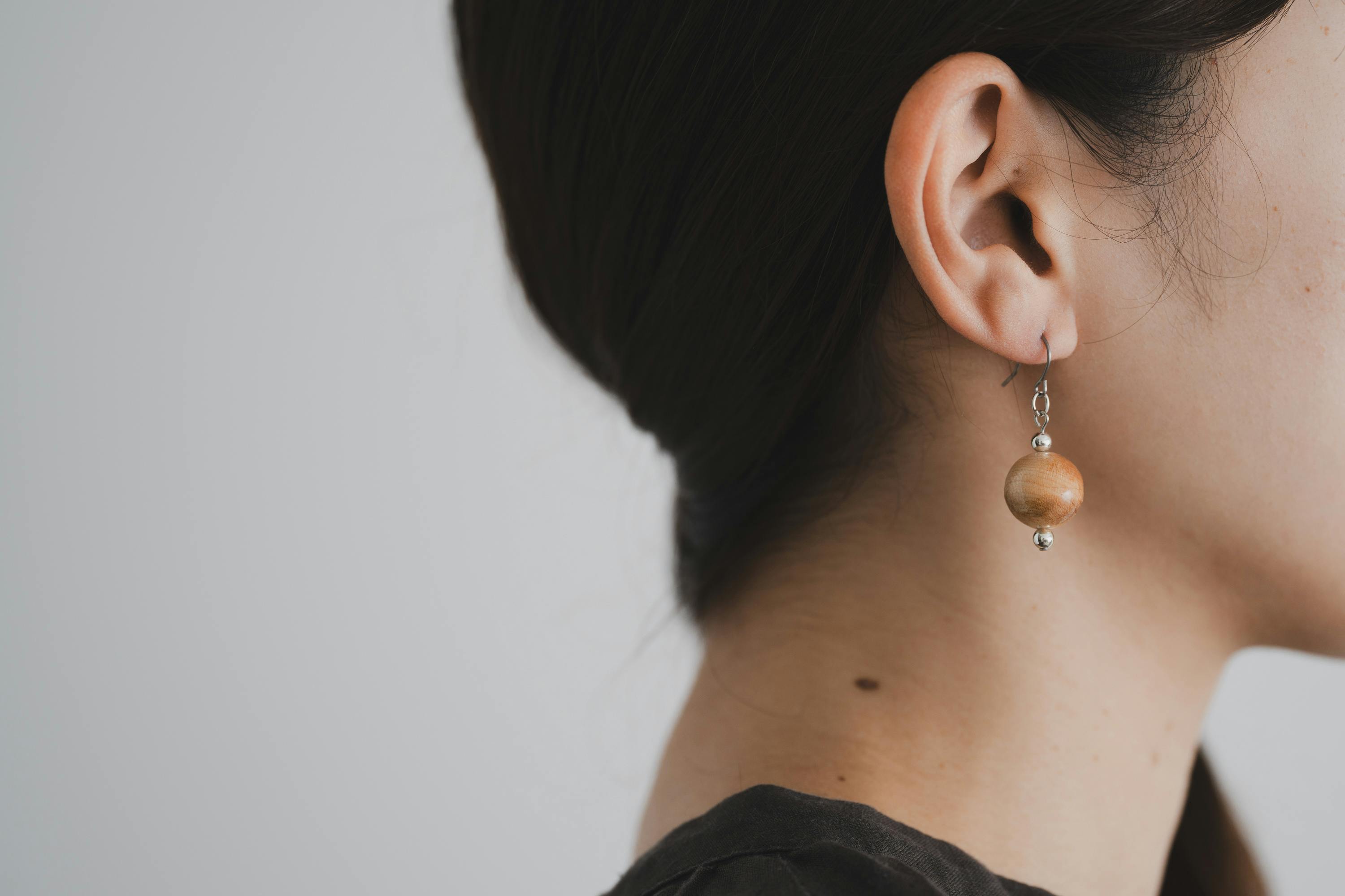 A いいえ、木製のため非常に軽いです。長時間着けていても耳に負担がかかりにくく、快適にお使いいただけます。木の温もりと軽さを楽しみながら、日常使いにぴったりなアクセサリーです。