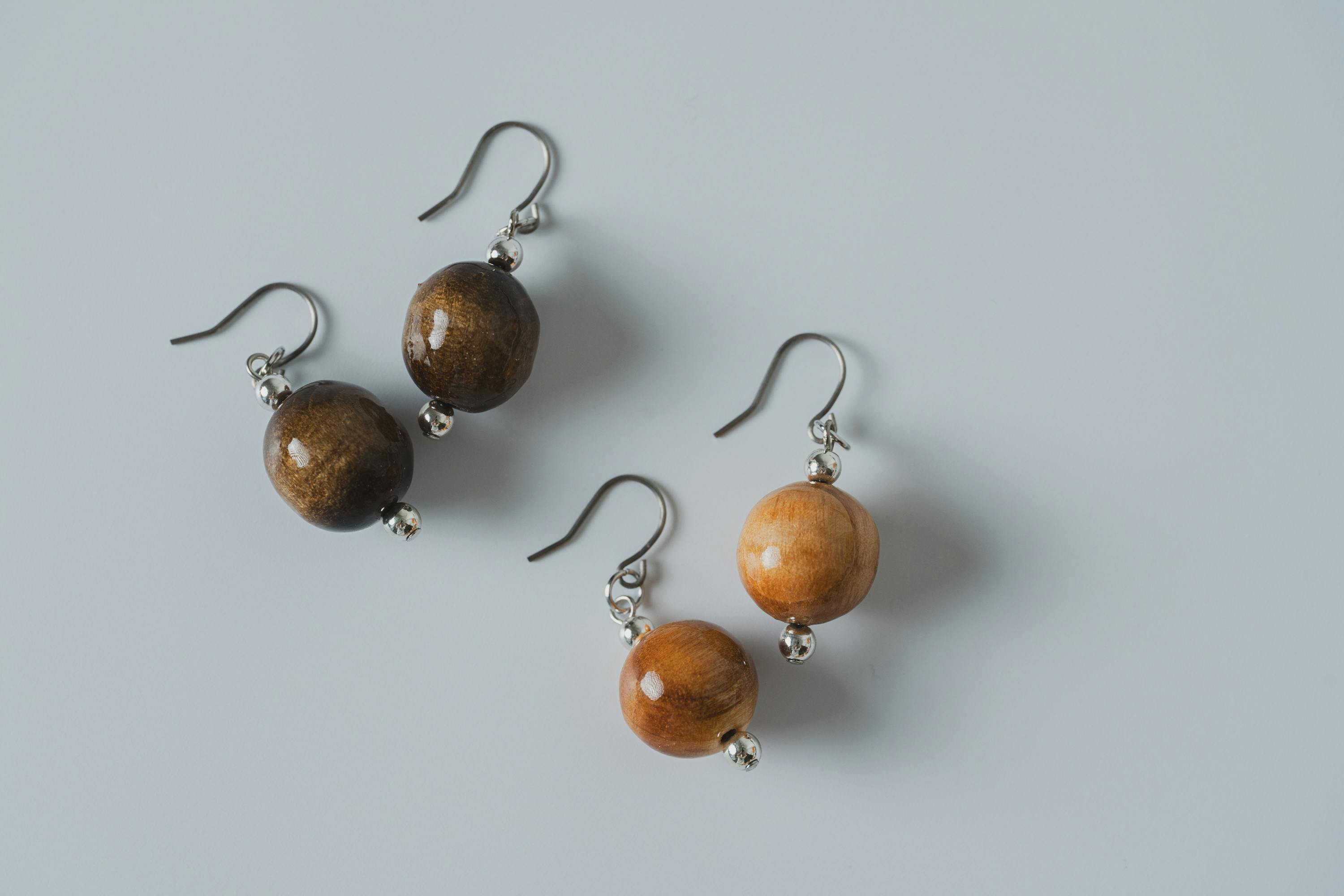 また、木材ごとの色や木目の違いが一つひとつ異なるため、それぞれが世界に一つだけの特別なピアス/イヤリングとなります。