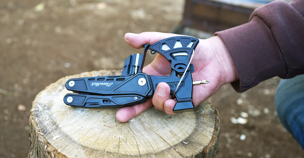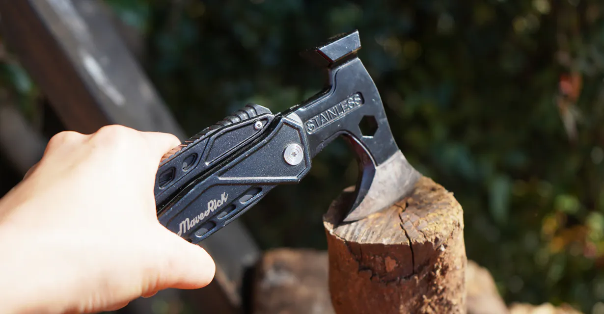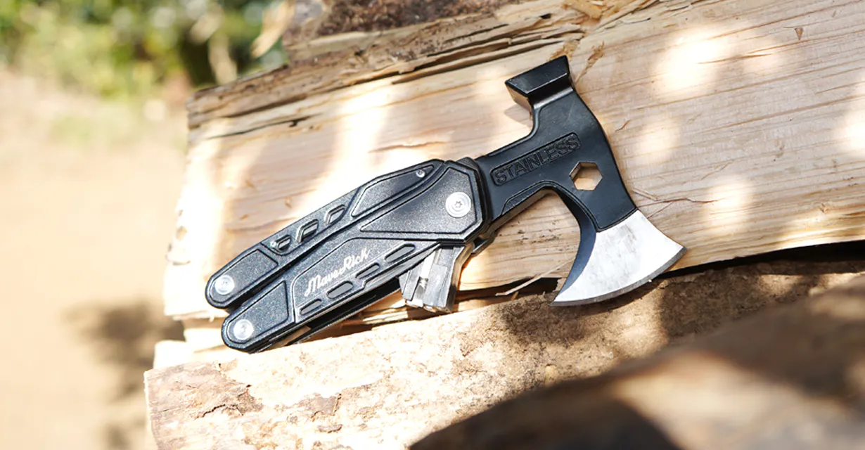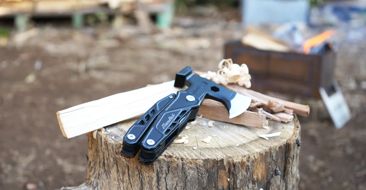 さらにそれぞれの機能品質も良く、斧・ナイフ類の切れ味はもちろん、しっかりと重みもある本体はハンマーや斧の使い勝手も抜群、プライヤーは整備などに使用できるほどのクオリティーです。
