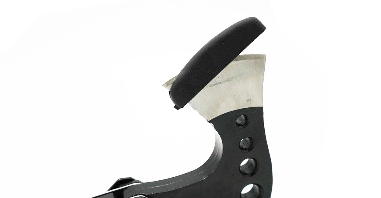 ブラックチョッパーの斧カバーは固いプラスチック製で破ける心配もありません。さらにカバーが外れないようにブラックチョッパー独自のワイヤーロックを付けました。