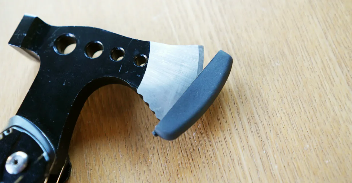 他のよくある斧型マルチツールでは、斧のカバーが柔らかいゴム製の物が多いです。