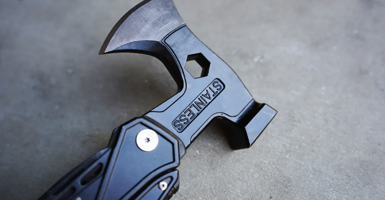 ステンレスのしっかりとしたボディーに、ブラックカラーがかっこいいだけじゃない多機能な斧を開発しました。