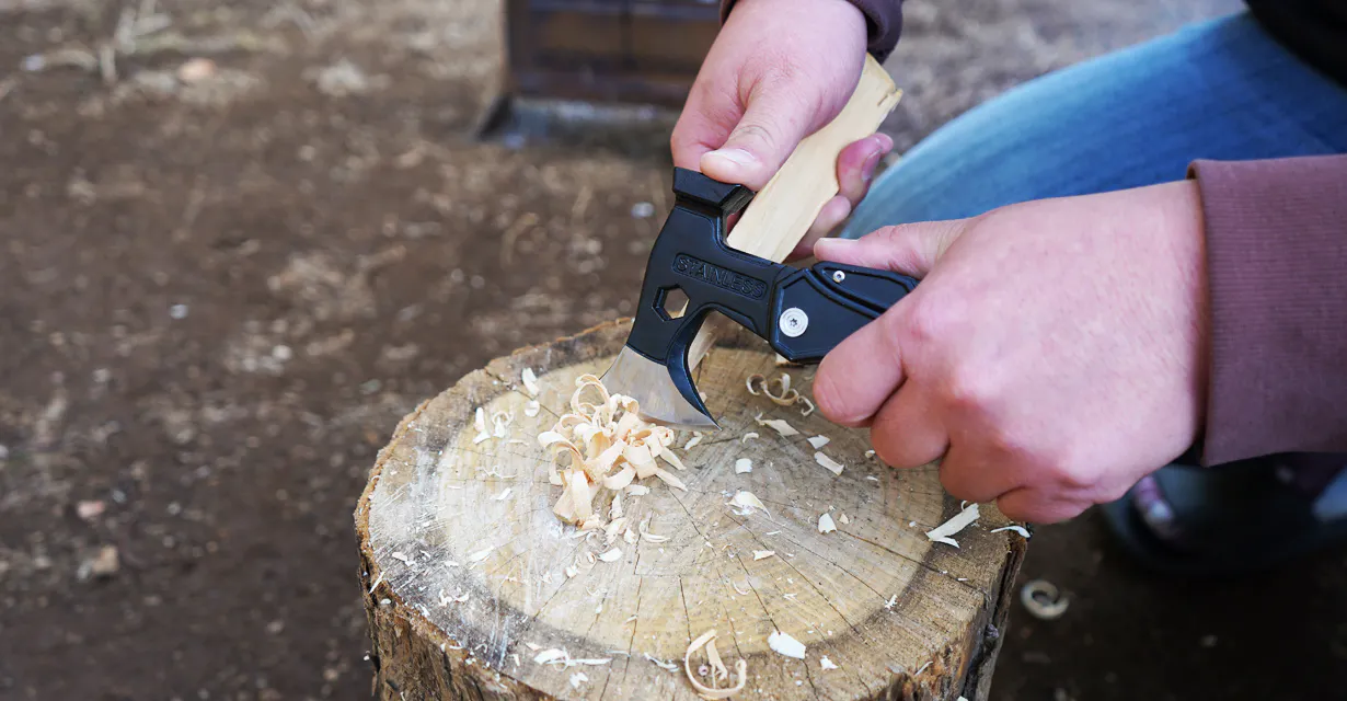 実際どのキャンプ場に行っても薪を販売しているところがほとんどで、キャンプ場販売や現地調達などでも、薪を手に入れたときに必要になりがちな作業が「薪割り」です。焚火台や薪ストーブなどのサイズに合わせたり、火付を良くするために薪を小さくしたりと、手に入れた木材を割ったり・切ったりが必要になった時に「こまった!」という思いをした人も多いのではないでしょうか。