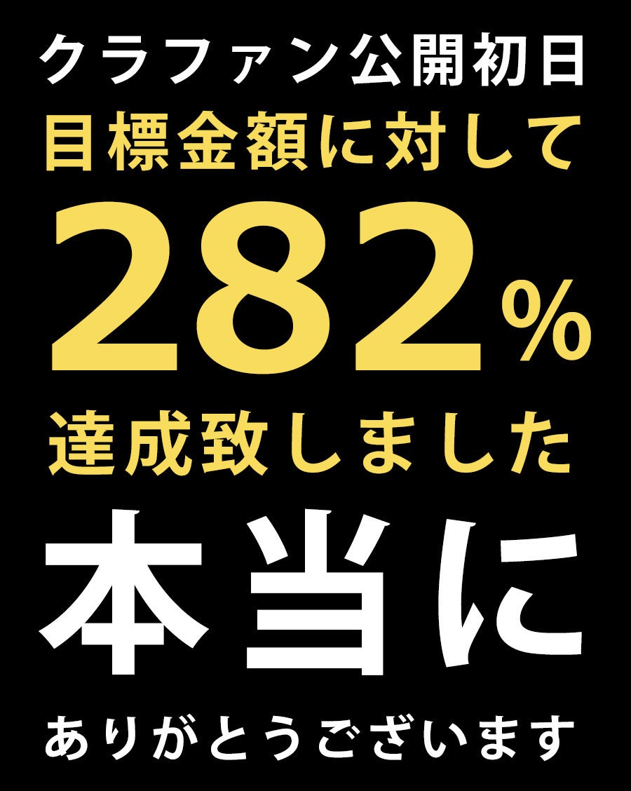 おかげ様でプロジェクト公開初日に目標金額の282%を達成致しました。