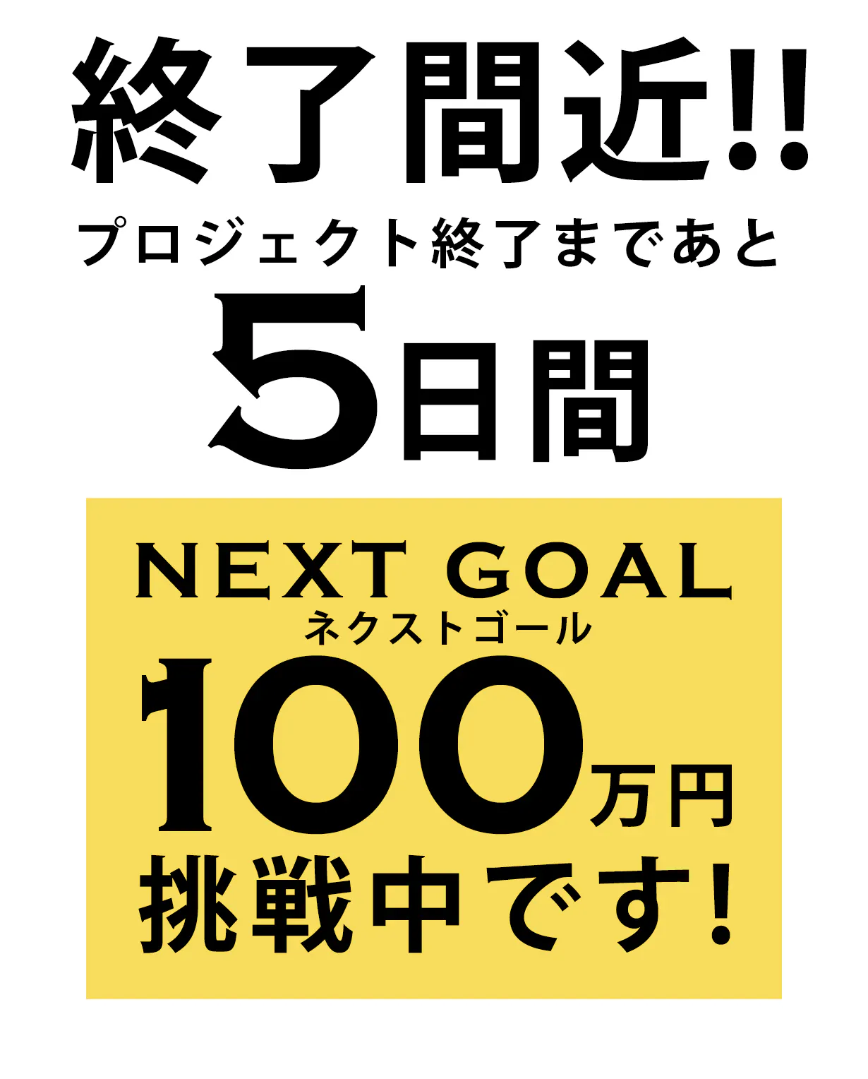 ネクストゴール100万円に向けて最後まで頑張りますので、どうぞご支援よろしくお願い致します。