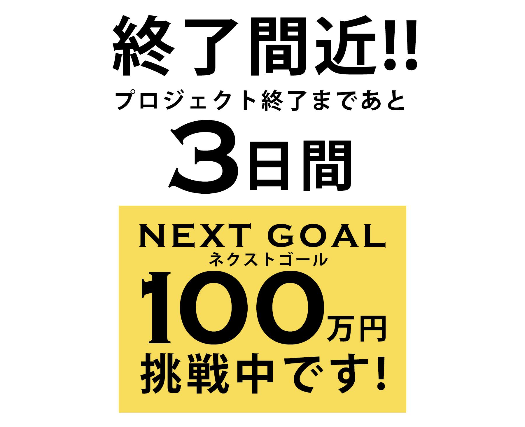 ネクストゴール100万円に向けて最後まで頑張りますので、どうぞご支援よろしくお願い致します。