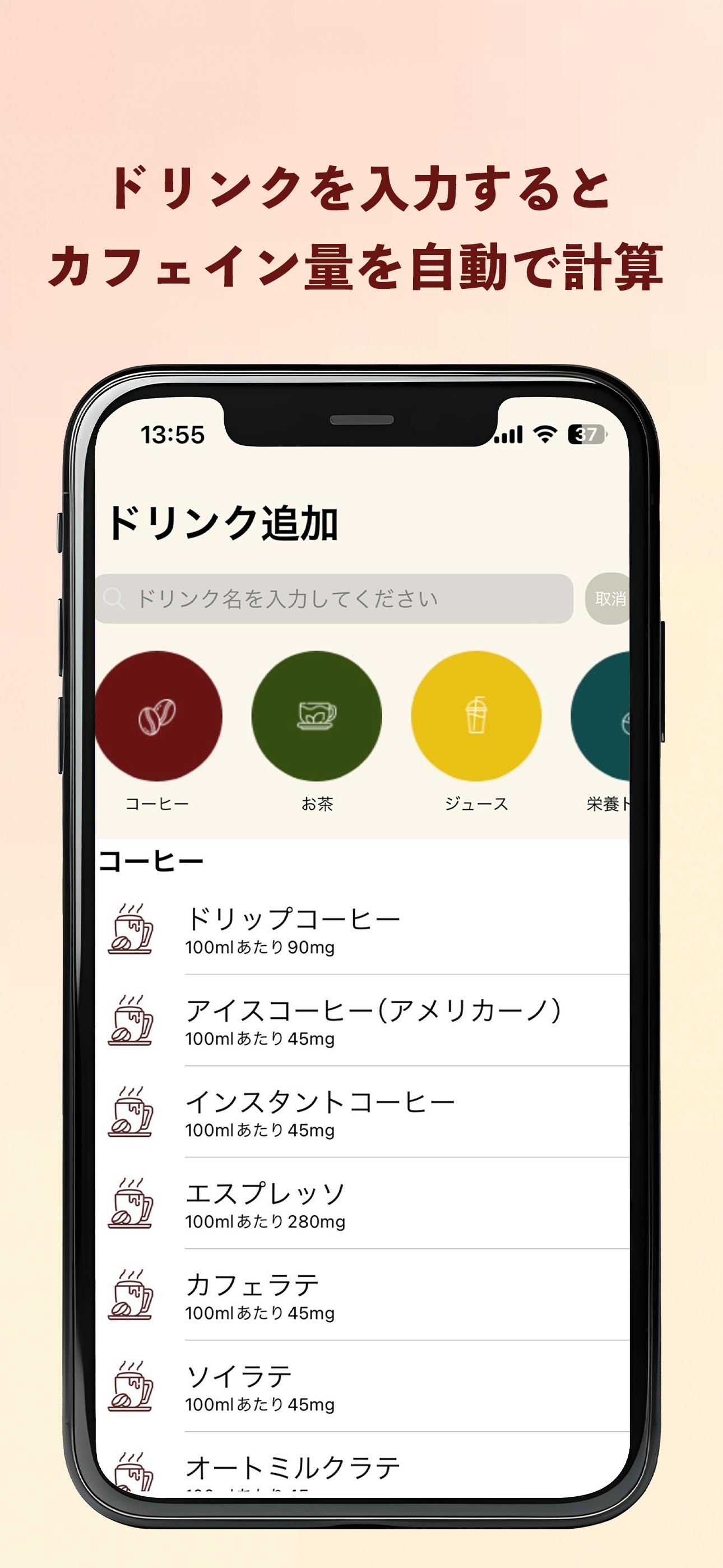 飲み物ごとにカフェインの量を教えてくれます。