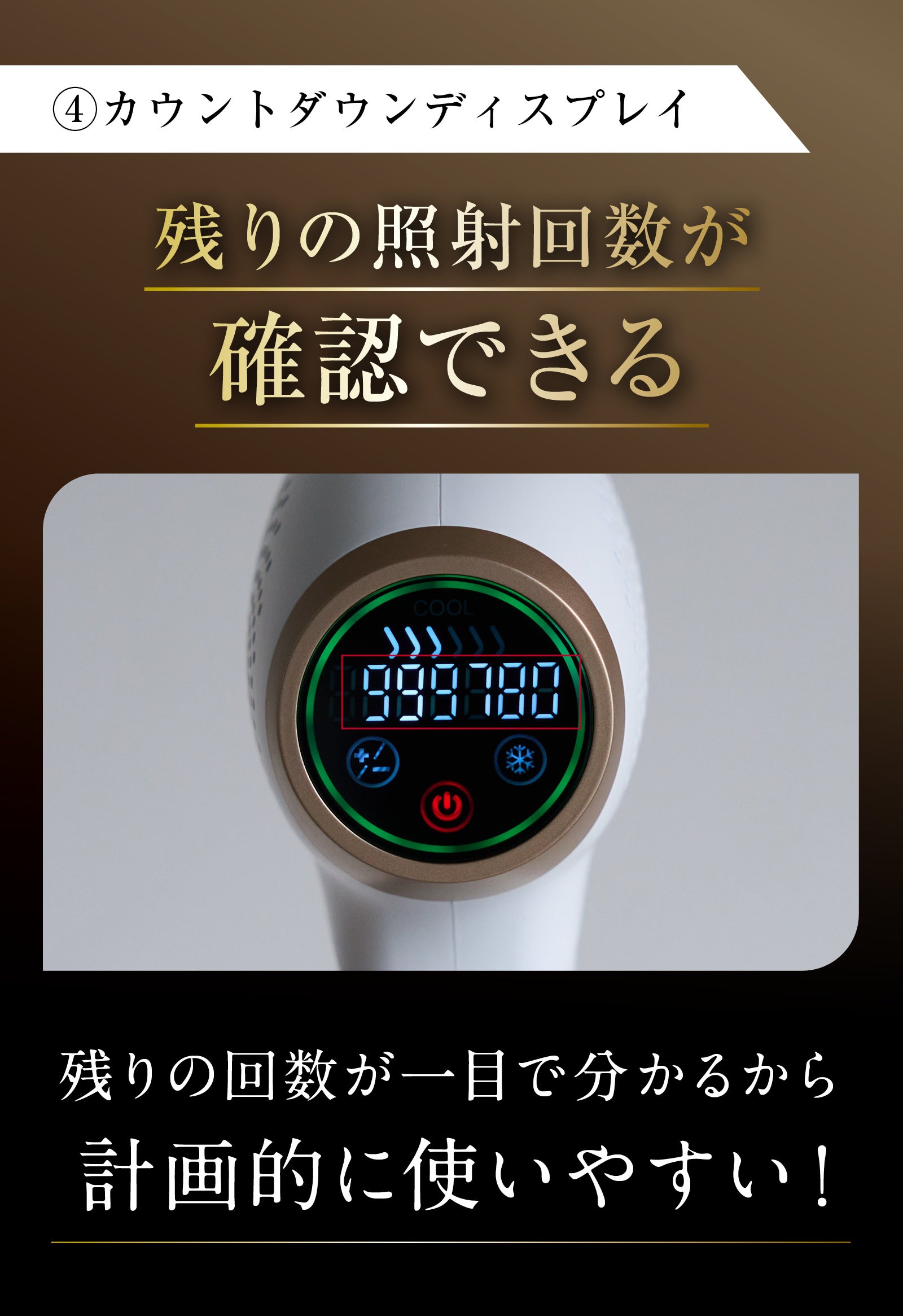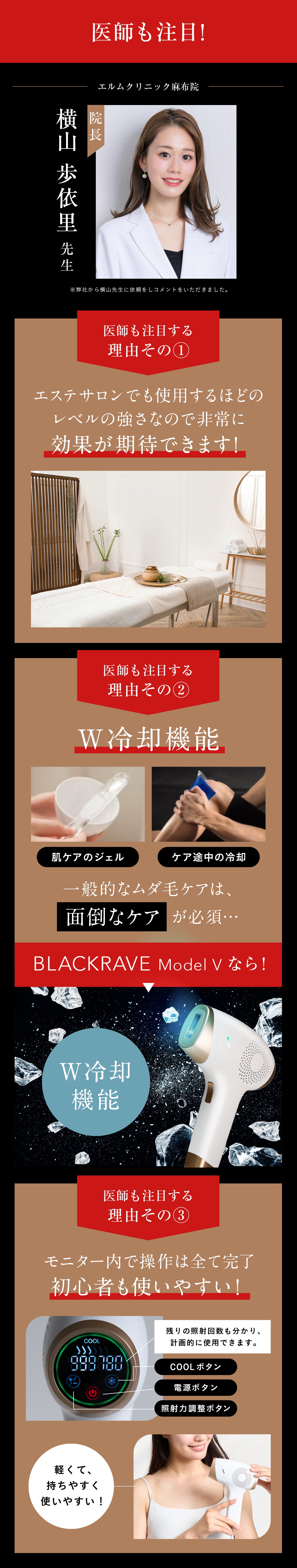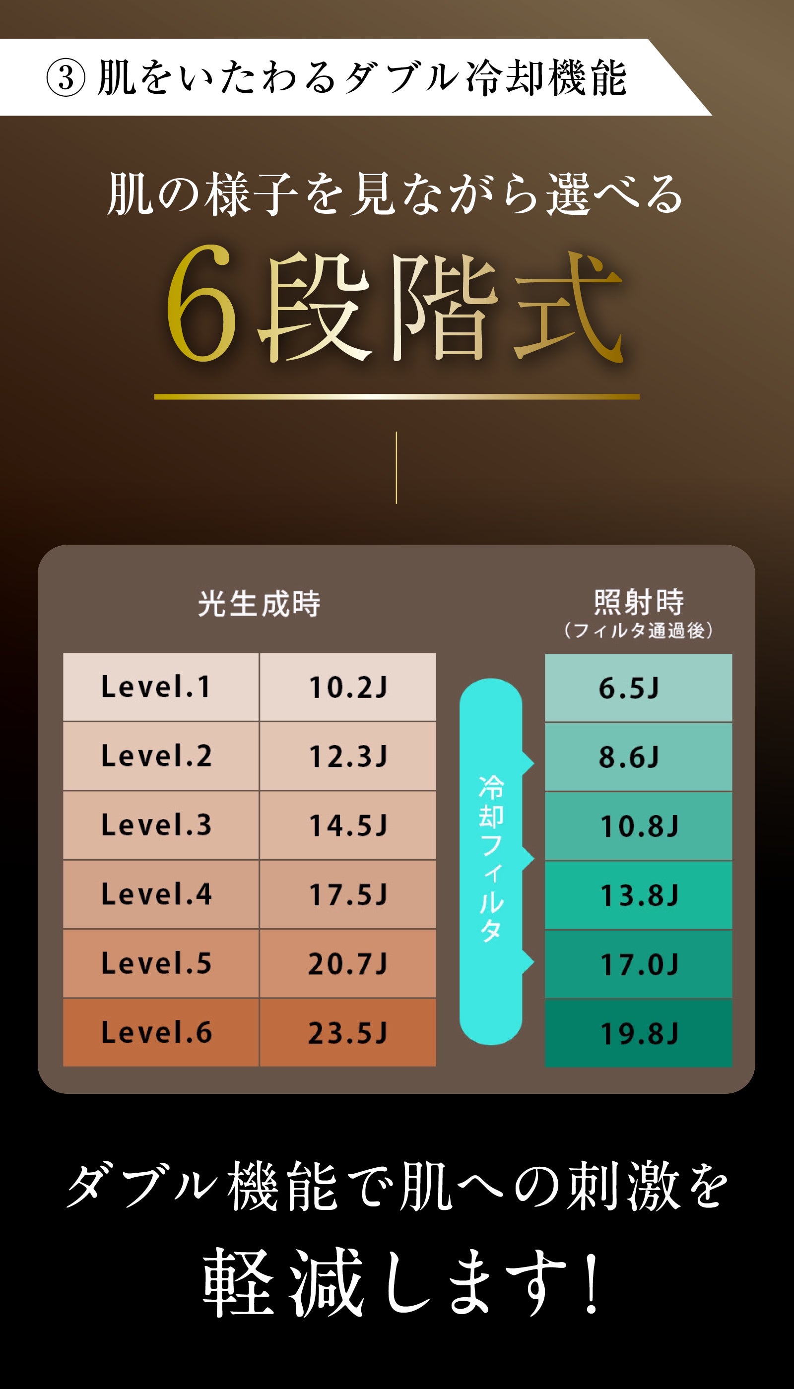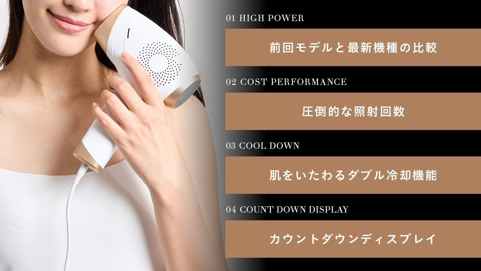 照射時に熱くなりやすい照射面を冷却する「ダブル冷却」機能を通じて、