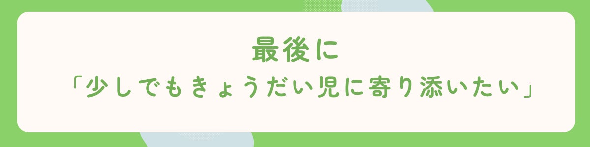 どうしても孤独になりやすいきょうだい児の皆に、少しでも寄り添うことができたらなと思います。