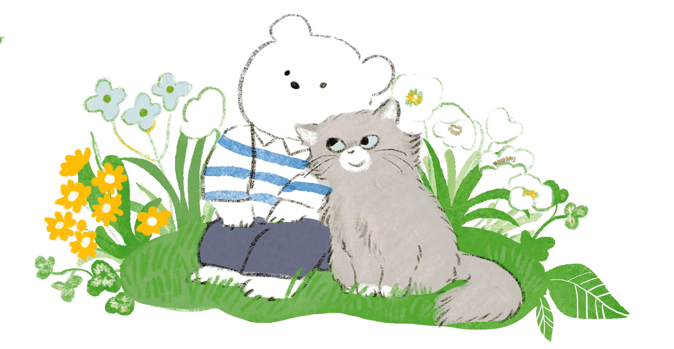 家族が大好きな しろくま君 と、偶然であった聞き上手な 猫ちゃん の物語。