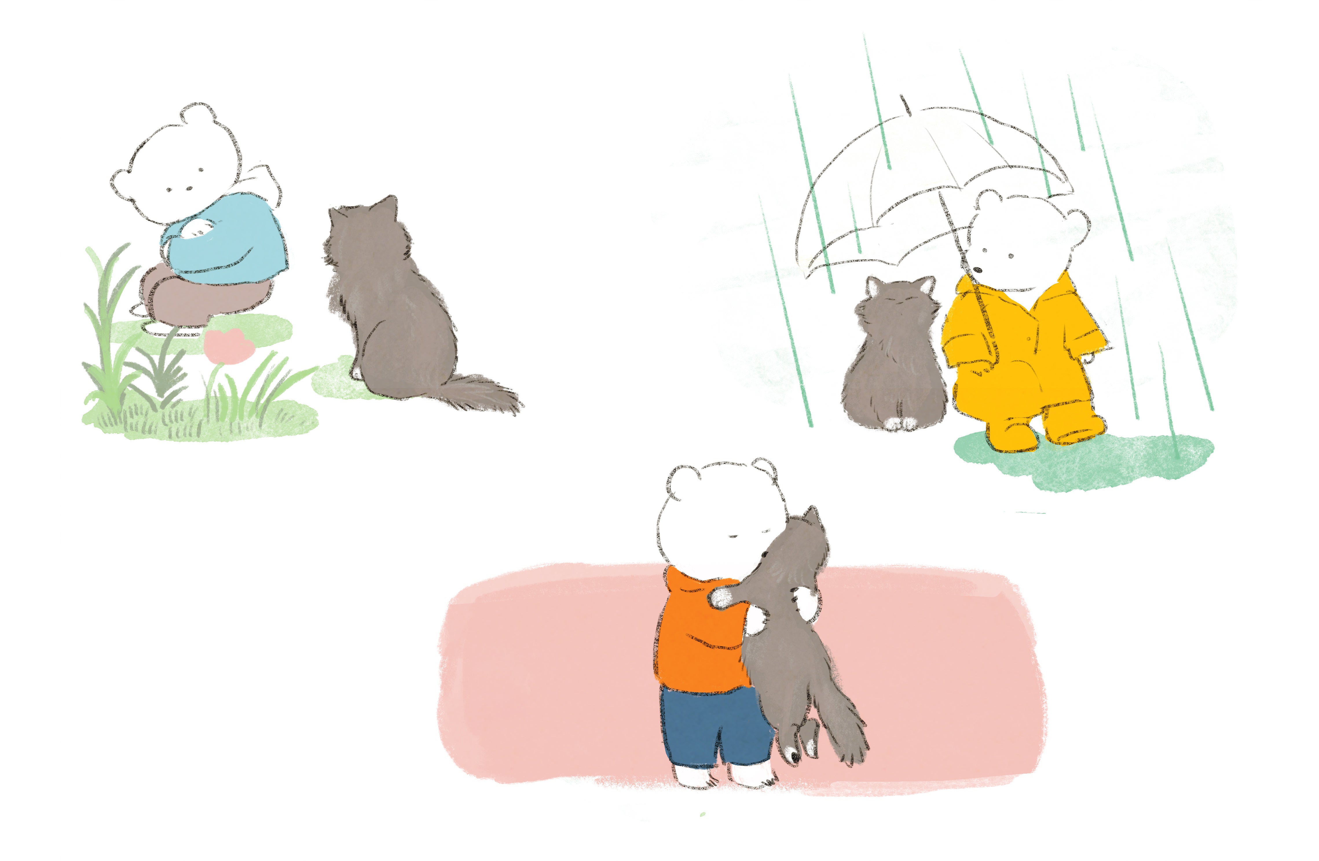 聞き上手の猫との対話で、しろくま君は自分の気持ちに向き合うことと、気持ちを素直に打ち明けることの大切さを学びます。