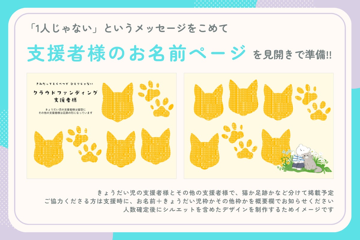 ということを伝えるために、支援してくれた「きょうだい児」当事者の方の名前を、ネコのモチーフで載せたいと思っています。
