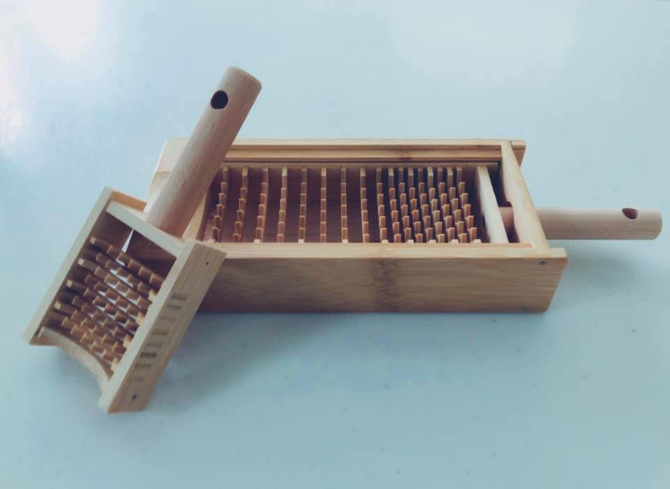 - 大根とにんじんを「鬼おろし」というおろし器で粗くおろす。