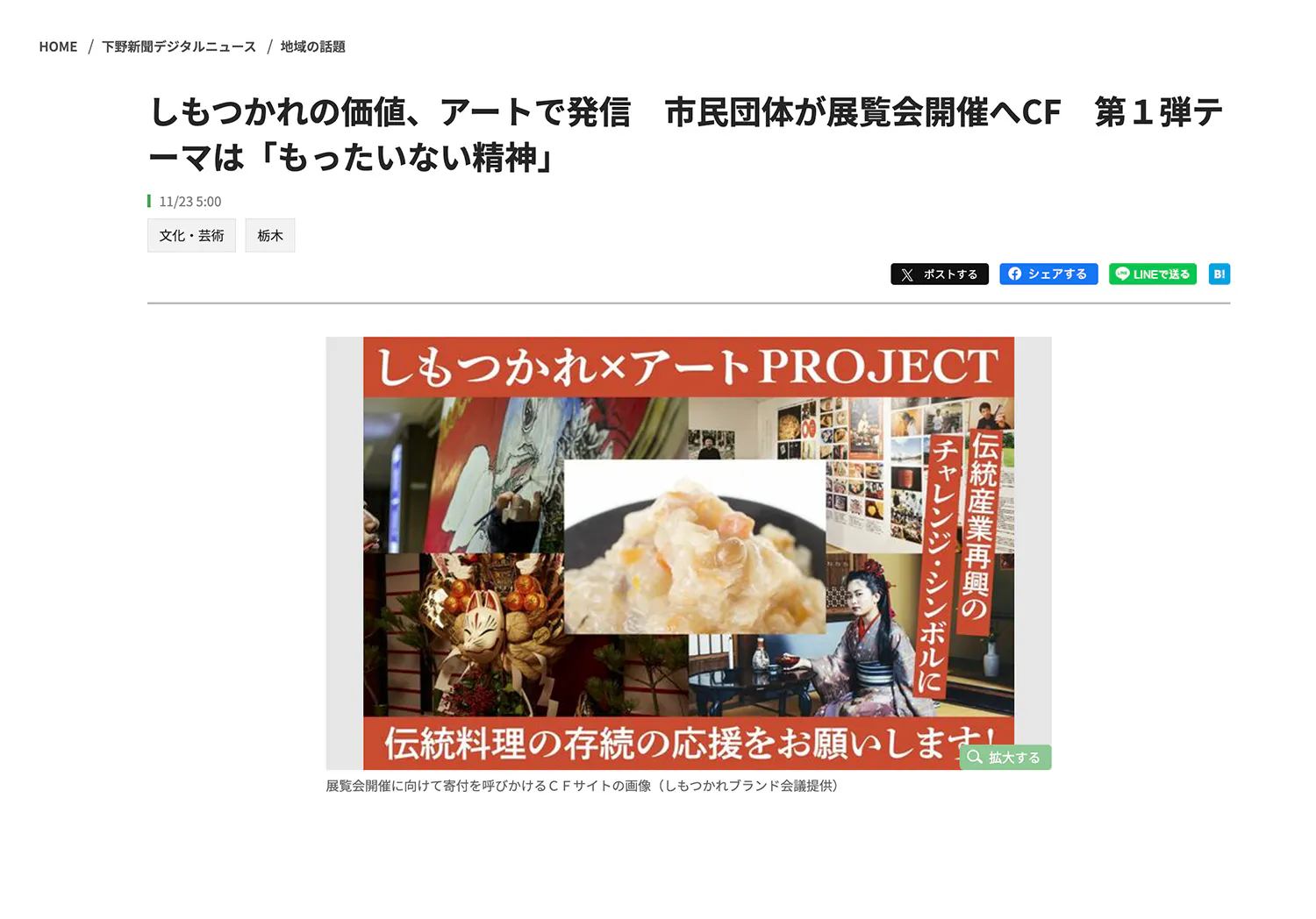 今回のクラウドファンディングの記事が下野新聞に掲載になりました!