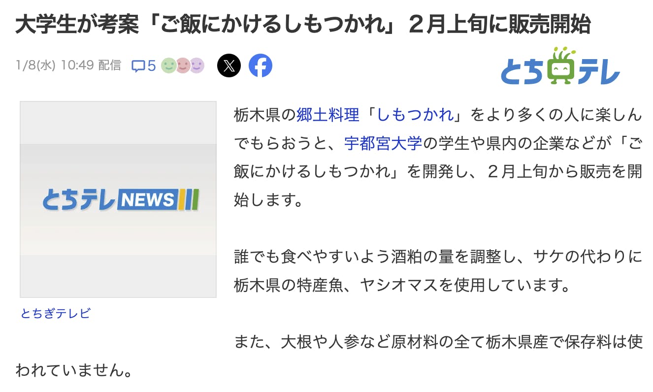 大学生と開発中の「ご飯にかけるしもつかれ」が!Yahoo!ニュースになりました!