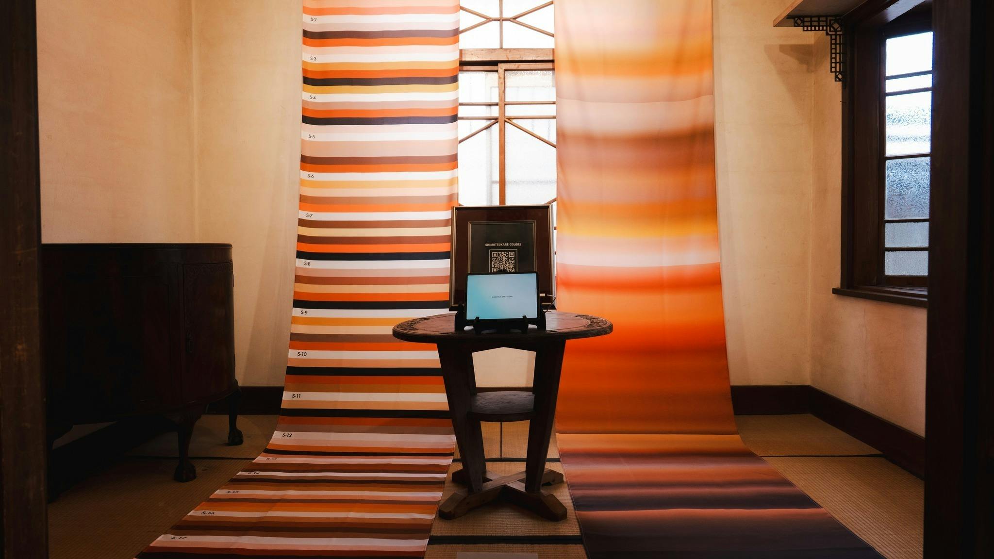 そして中央のタブレットには、グラフィックまでのプロセスを映像化したもの、QRコードからは、実際に色を抽出したしもつかれの写真を見ることができます。