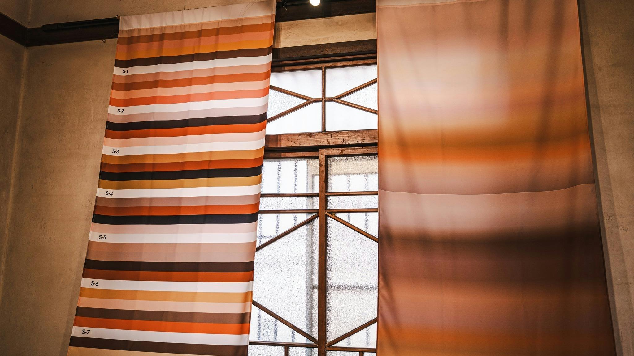 それらをつなぎ合わせ、長いドレープのある印刷で優雅に可視化しています。