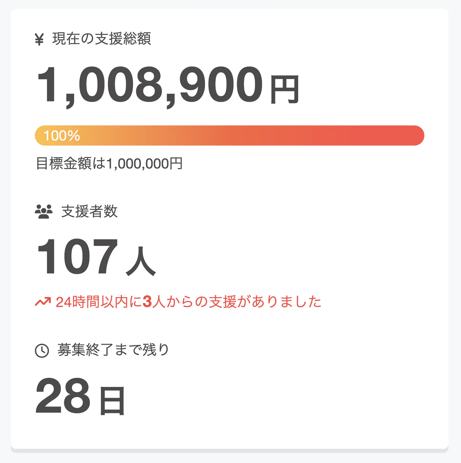 このプロジェクトは、2024/08/05に募集を開始し、 129人の支援により 1,175,100円の資金を集め、 2024/10/18に募集を終了しました