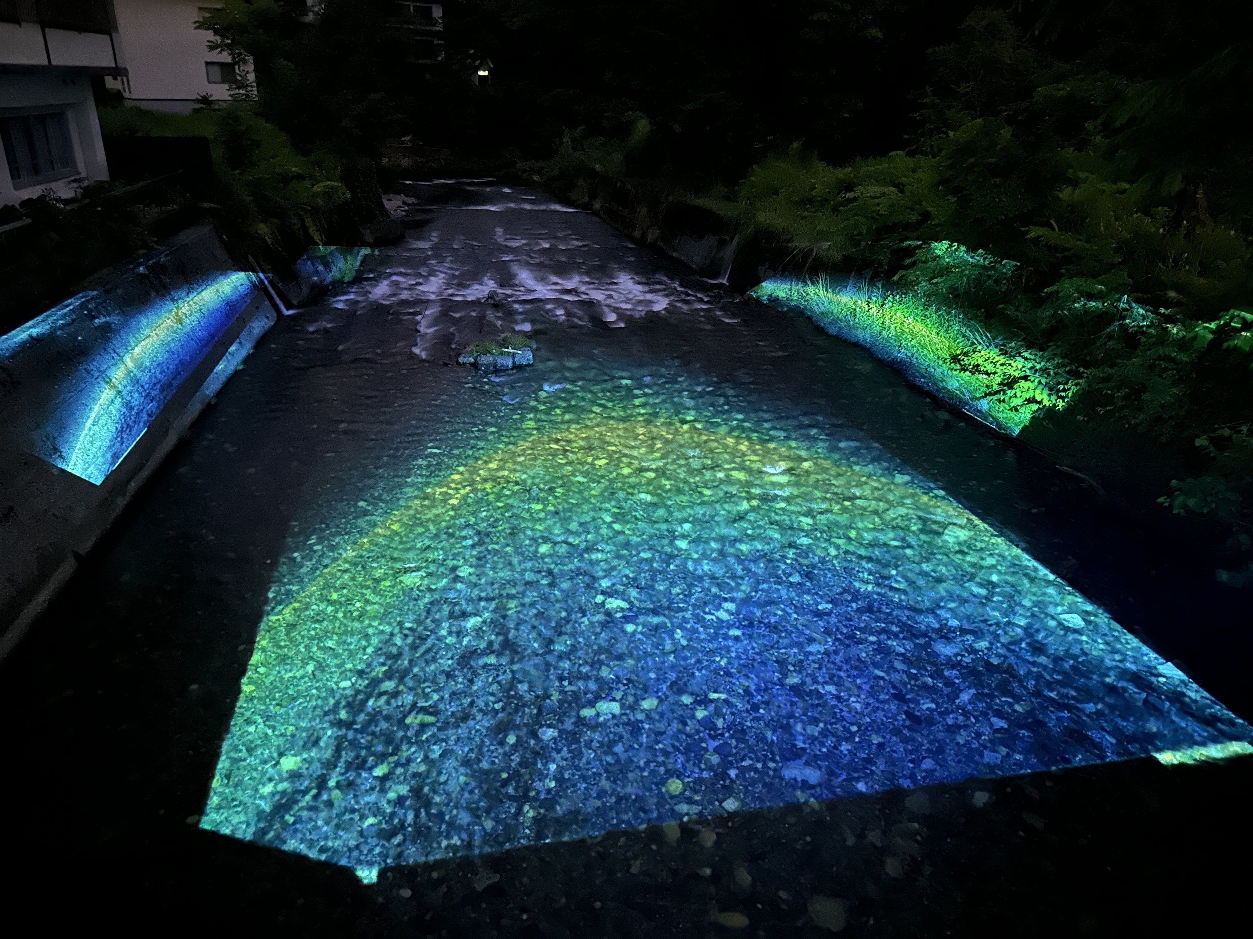 ※川面へのマッピングテストの模様(出力が弱いため廃止となりましたのでお見せいたします)