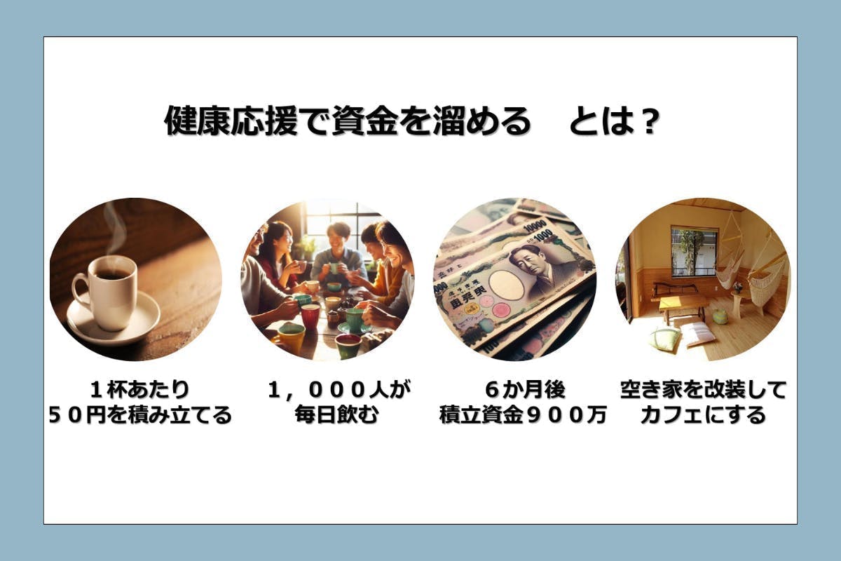 TUNAGI Coffeeを毎日飲むだけで、日々の健康習慣になり、資金が集まり、【4つのOKカフェ】が建つ!みんなが得する、幸せな循環です。この循環に参加する人をどんどん増やしたい!このプロジェクトの目的は、そこにあるのです。