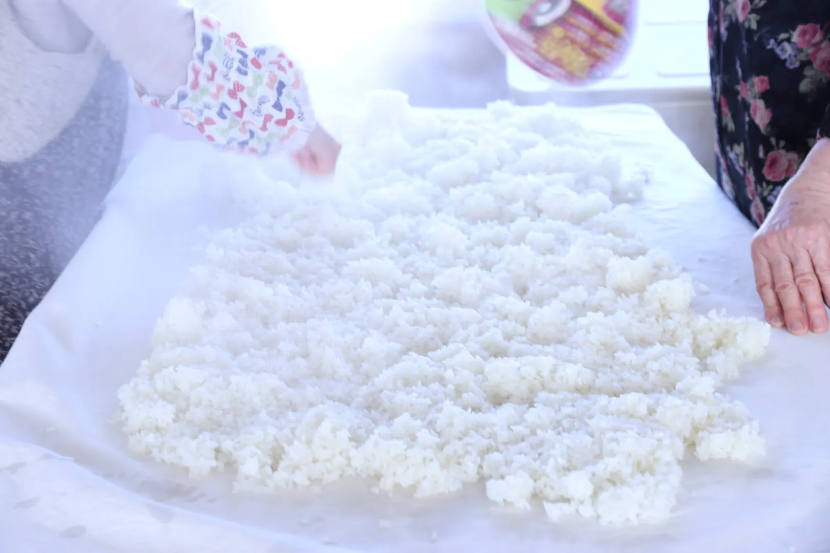 子どもたちと麹作り。麹作りは子どもたちにとって五感で感じる遊び。