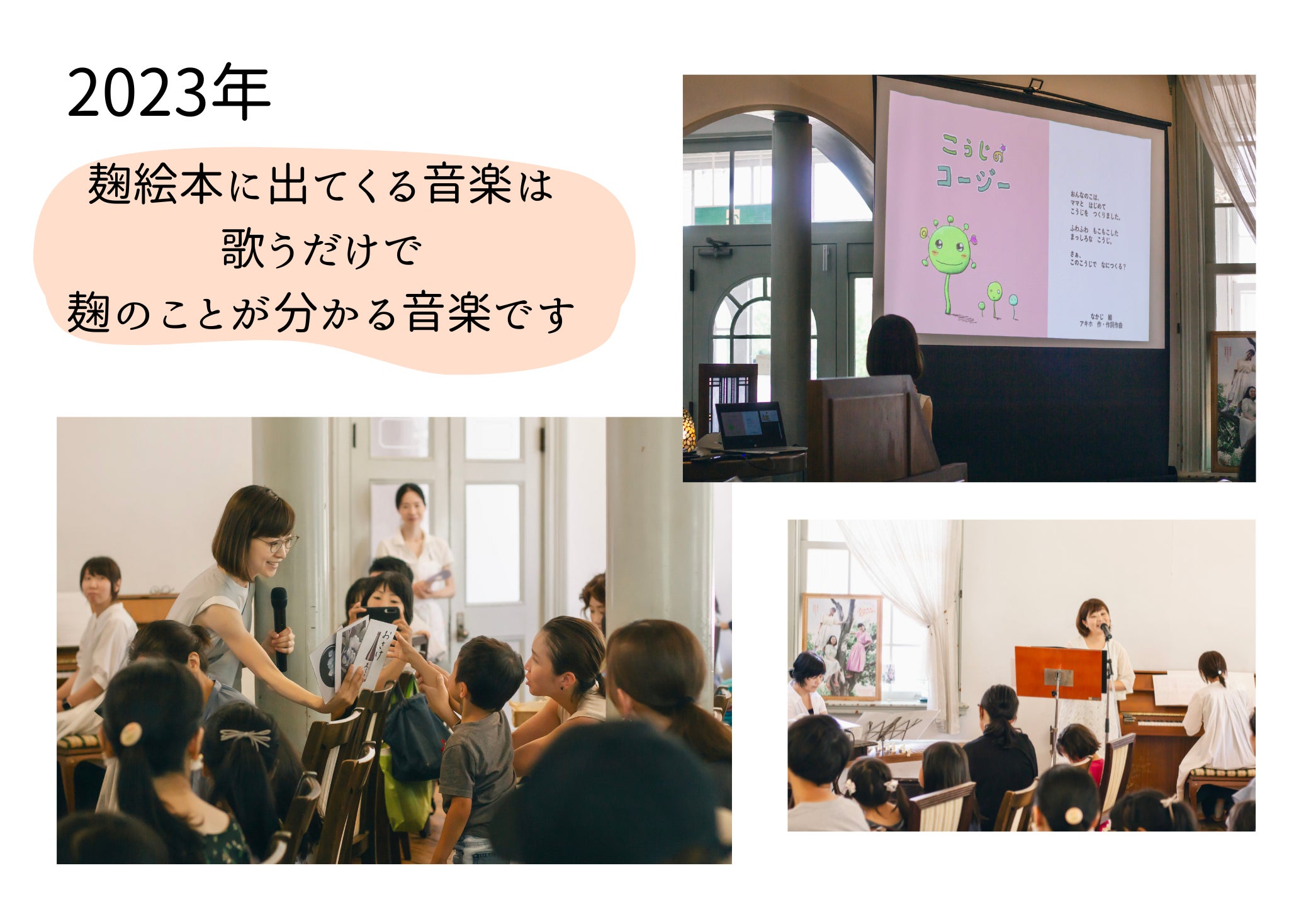 絵本『こうじのコージー』を公開し、制作途中の絵本を子どもたちに読み聞かせながら、絵本の長さや内容を改善してきました。コージーは毎年子どもたちに親しまれ、家に帰った後も、絵本に出てくるコージーの歌を歌ってくれる子や、お母さんが作る塩麹を見て「コージーだ!」と喜んでくれる子もいます。