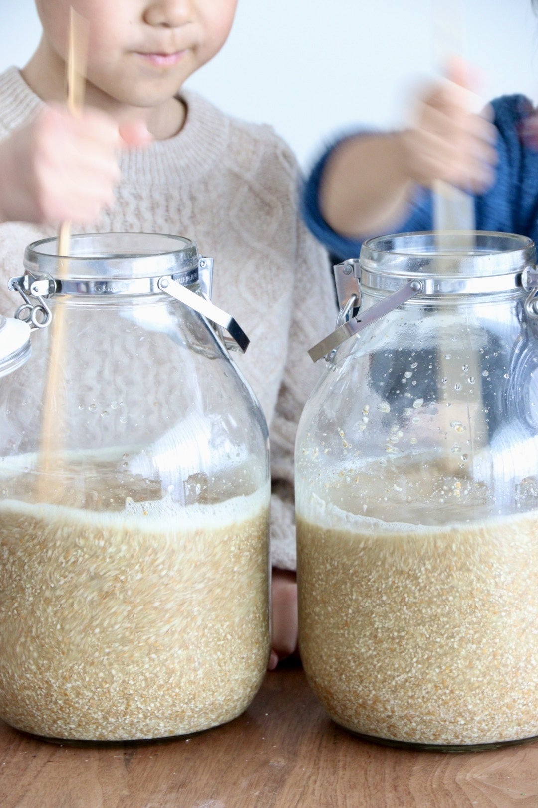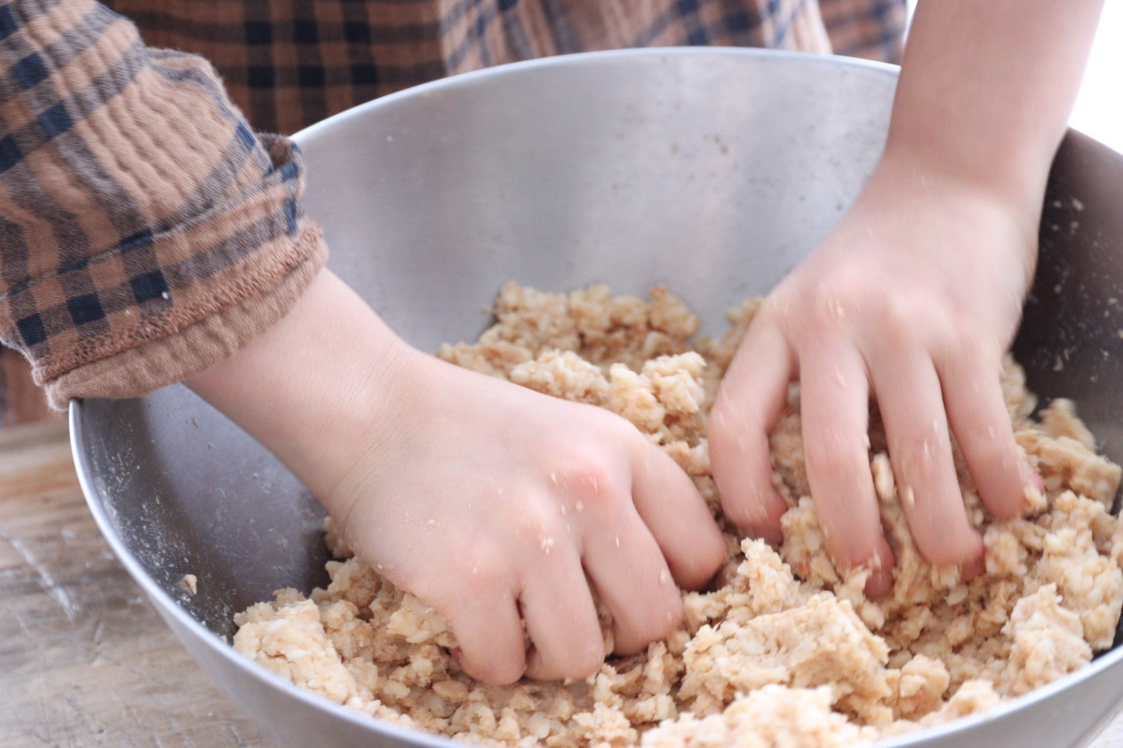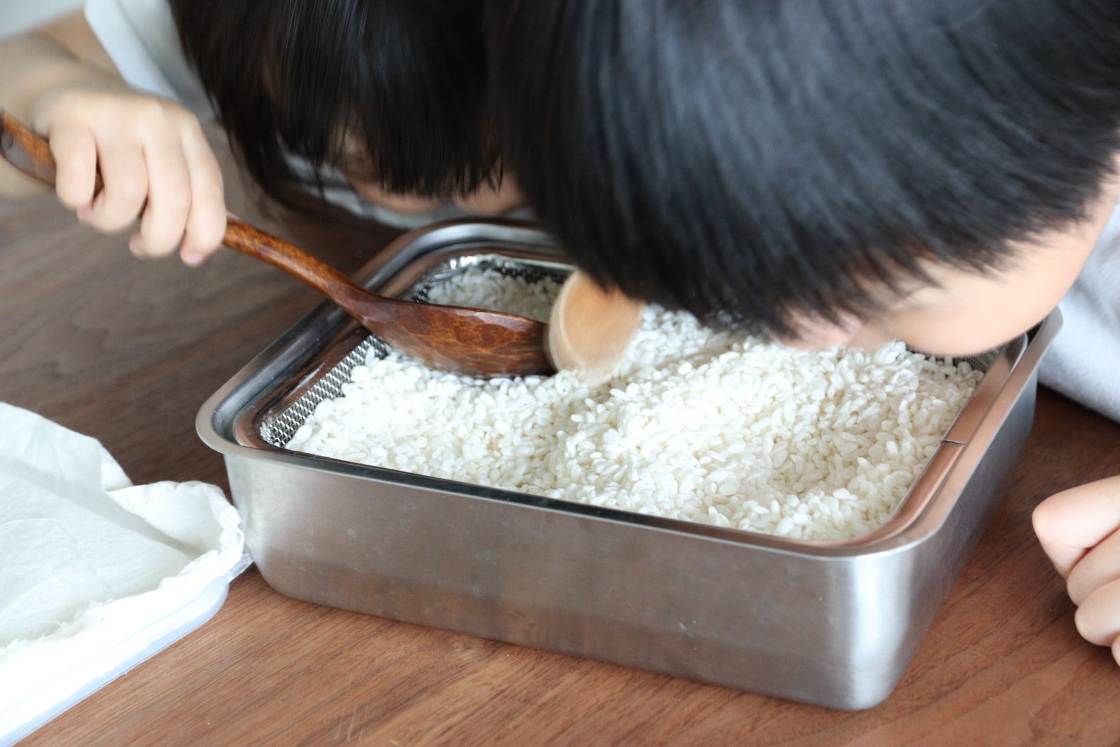 子どもたちと麹作り。麹作りは子どもたちにとって五感で感じる遊び。