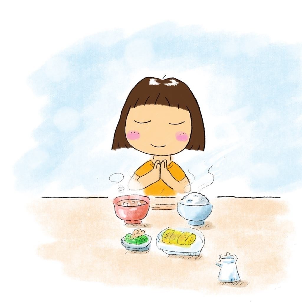 最後の食卓の場面。食べものは、命のつながりから生まれていることを体感したはなちゃん。「いただきまーす」という言葉で、物語は最後、締めくくられます。