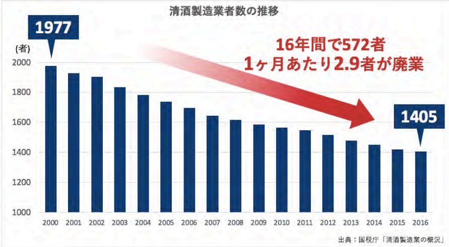 このグラフを見ても分かるとおり、清酒製造業は年々減少傾向にあります。