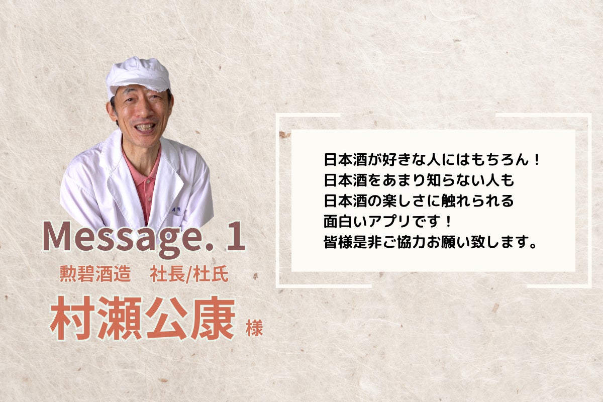 酒の香りと味、四季を楽しむ日本の文化、料理をさらに美味しくする魔法のアイテム日本酒を楽しむ。 このアプリを通して、一人でも多くの皆さんに日本酒を知ってもらいたい、共感を集めたいのです。
