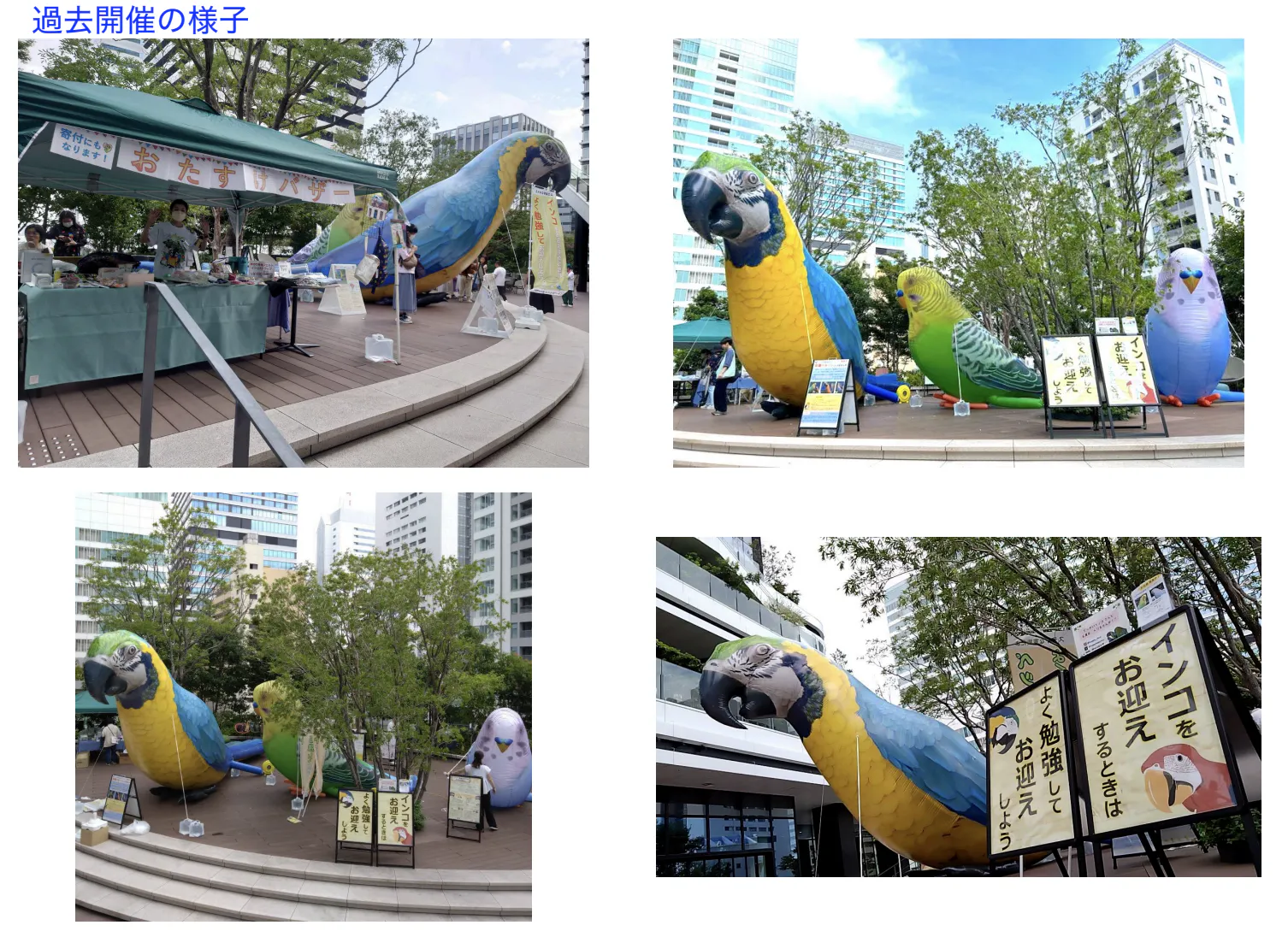 巨大インコバルーンを展示して、たくさんの人に、動物愛護推進、動物福祉向上を伝えたいと思っています!