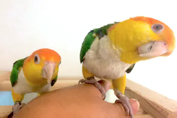 ビタミンカラーのシロハラインコちゃん、一目見ただけで明るい気持ちになれます♪