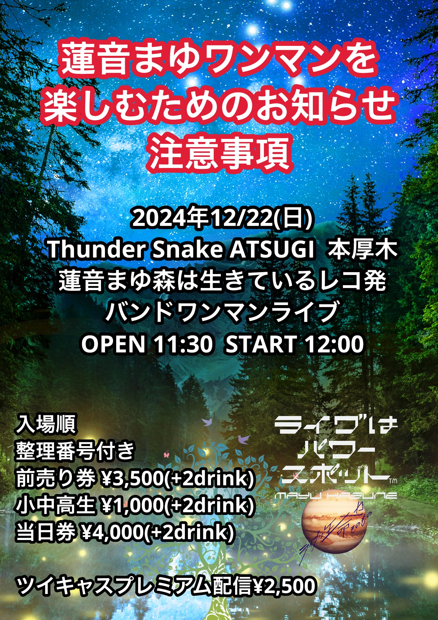 1、2024年12/22(日) Thunder Snake ATSUGI 本厚木 蓮音まゆバンドワンマンライブ OPEN 11:30 START 12:00