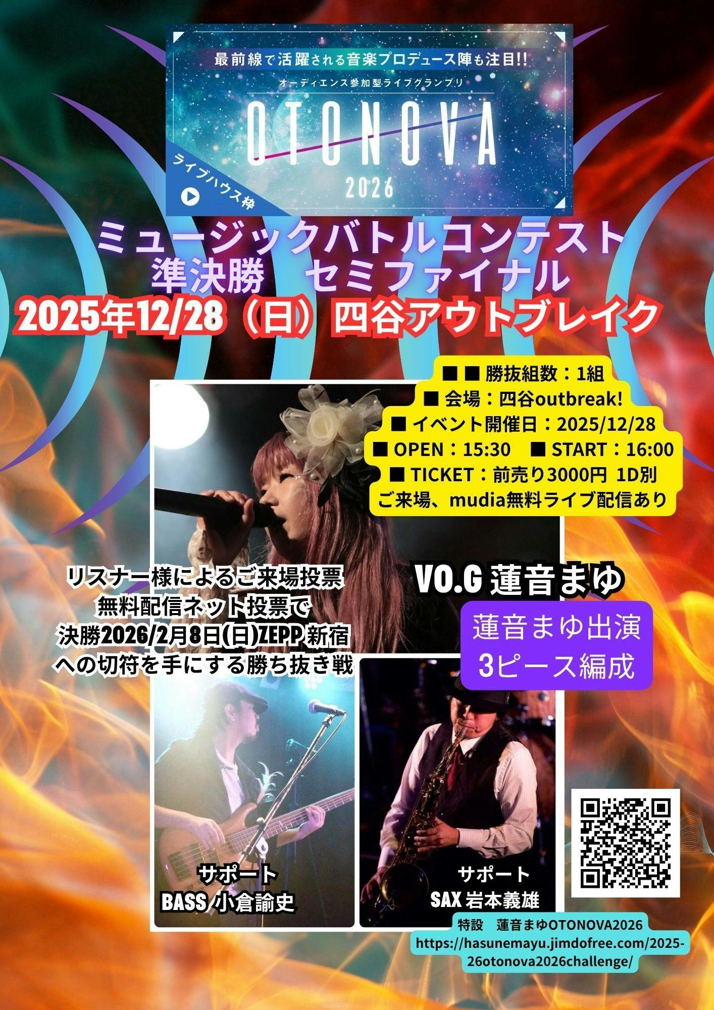 12/28(日)四谷アウトブレイク OTONOVA2026準決勝セミファイナルに出場です。
