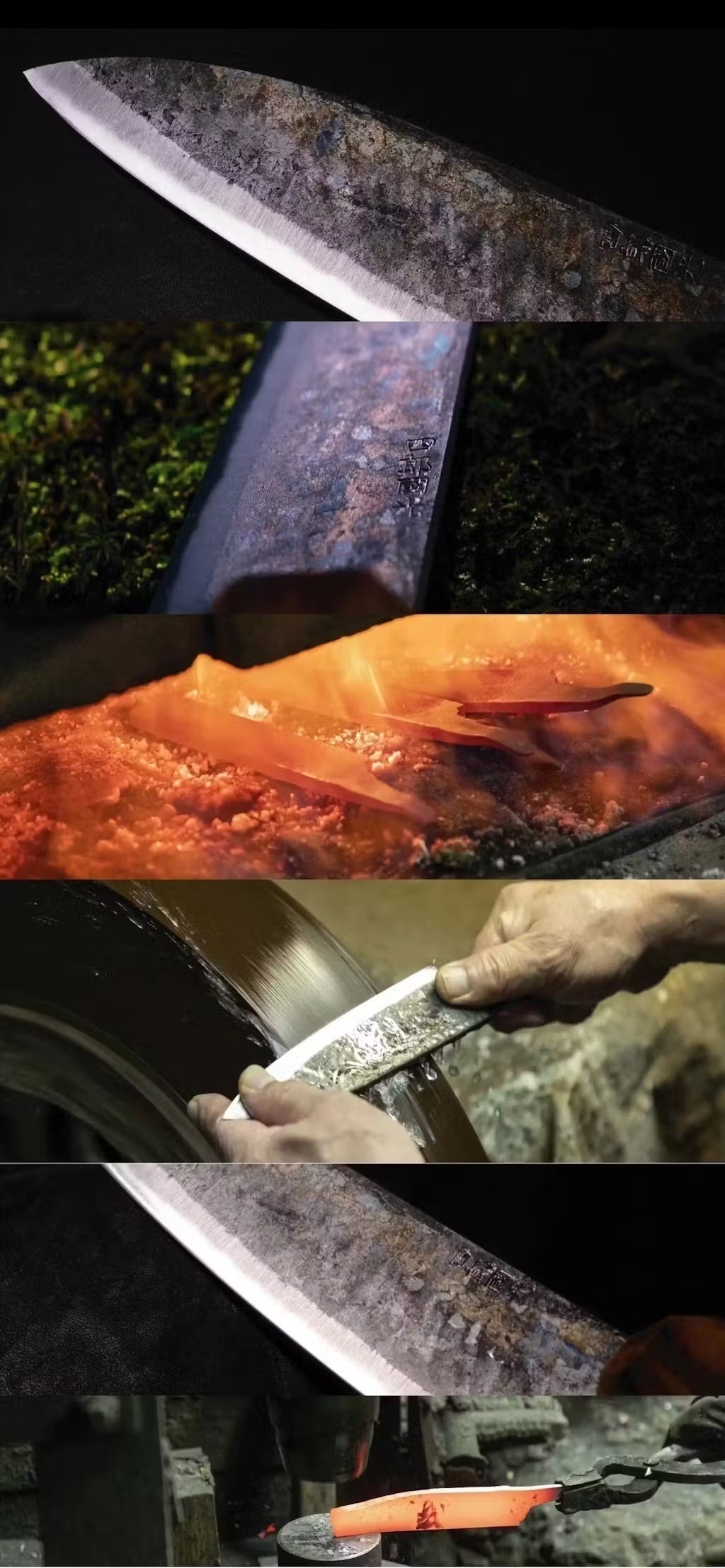 さらに鋼の粘りと強度を上げ切れ味を良くするため多くの鍛錬【叩き】を施しております。