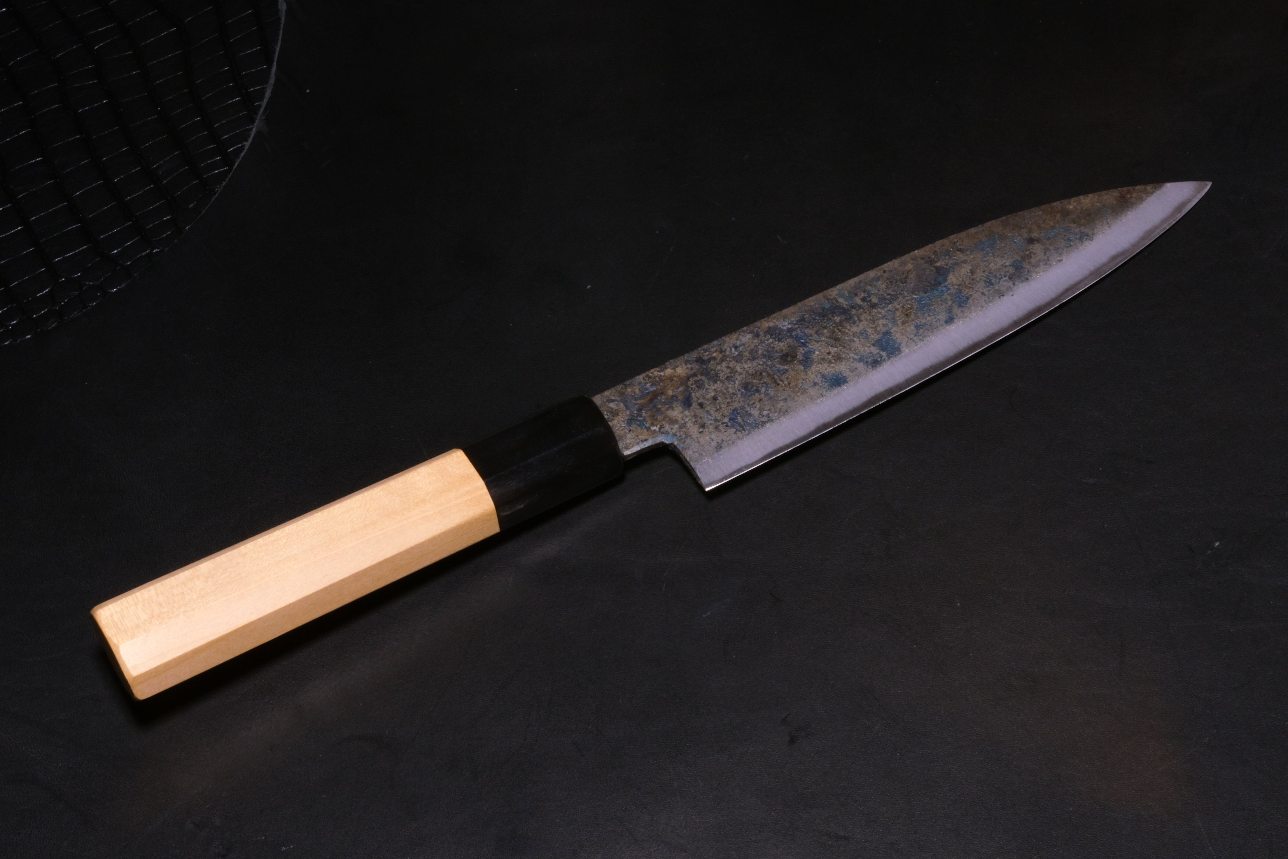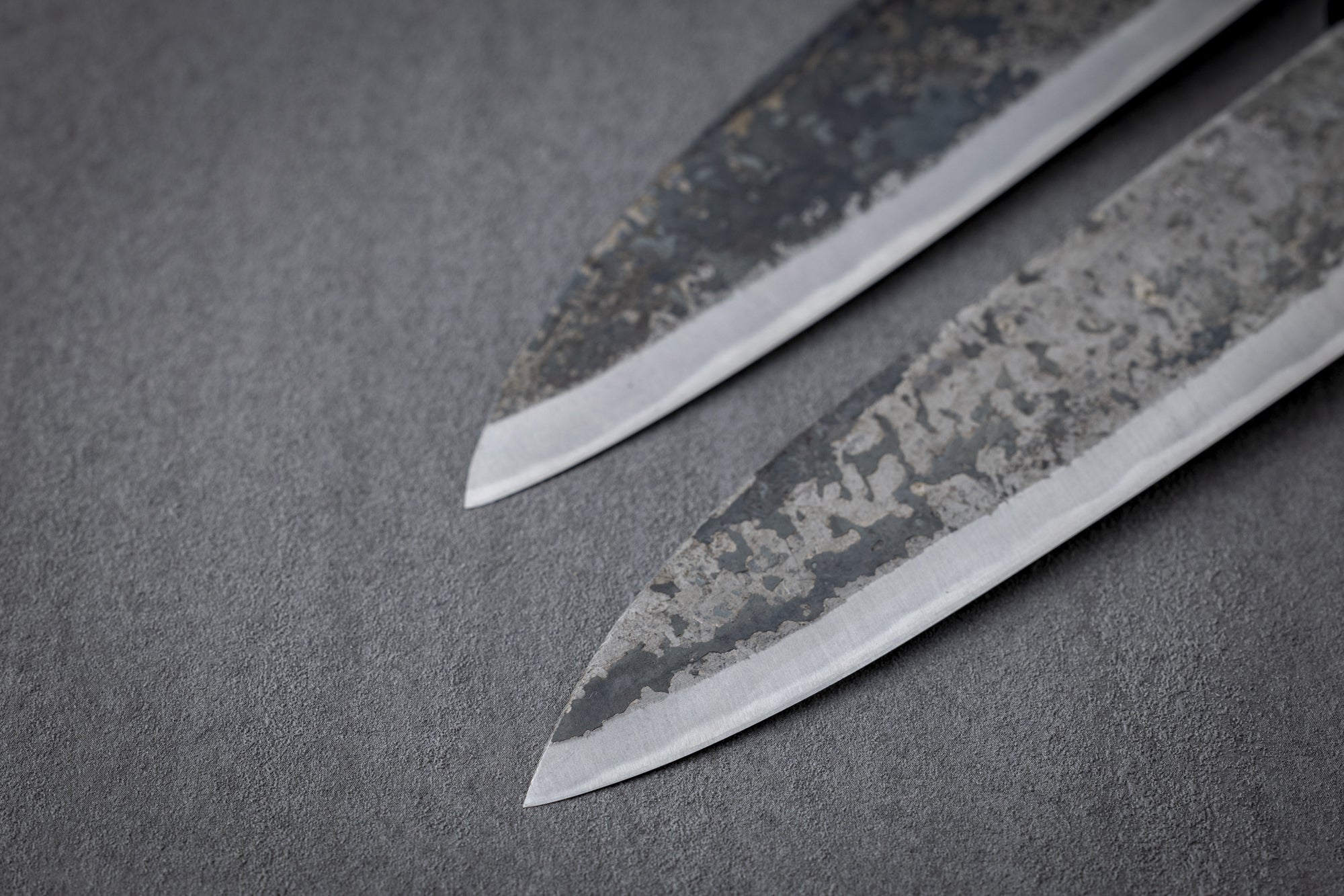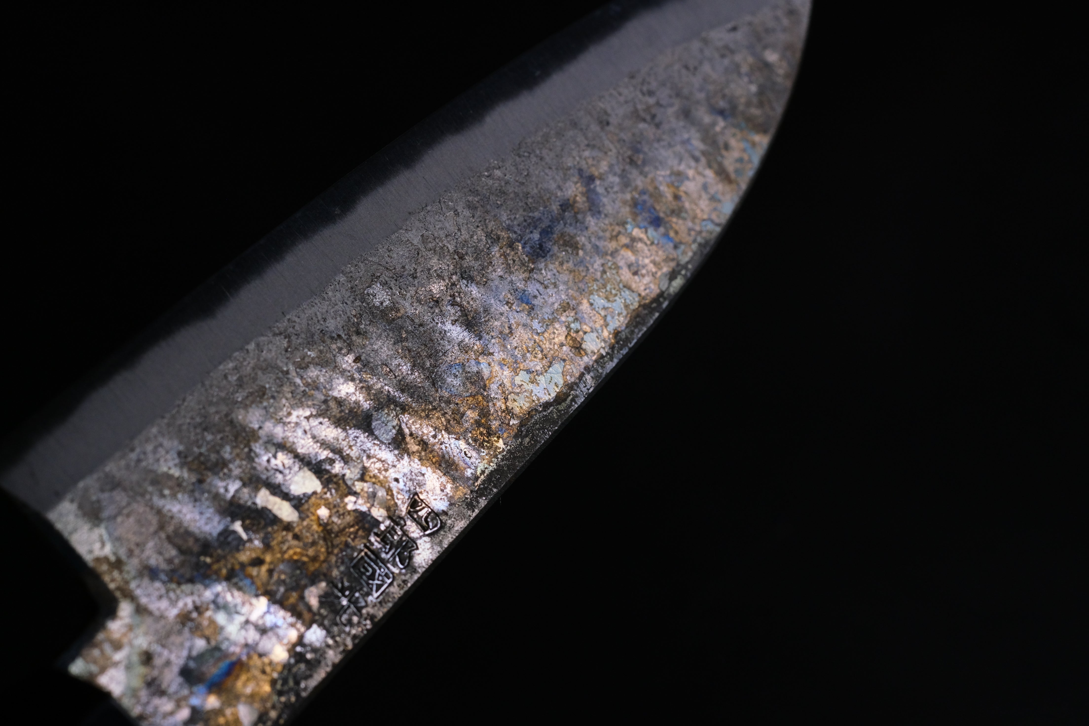 この「KUROUCHI」の名前の通り包丁表面の黒い部分は加熱時などで生成される酸化被膜です。その被膜をそのまま残した包丁を「黒打包丁」と呼びます。