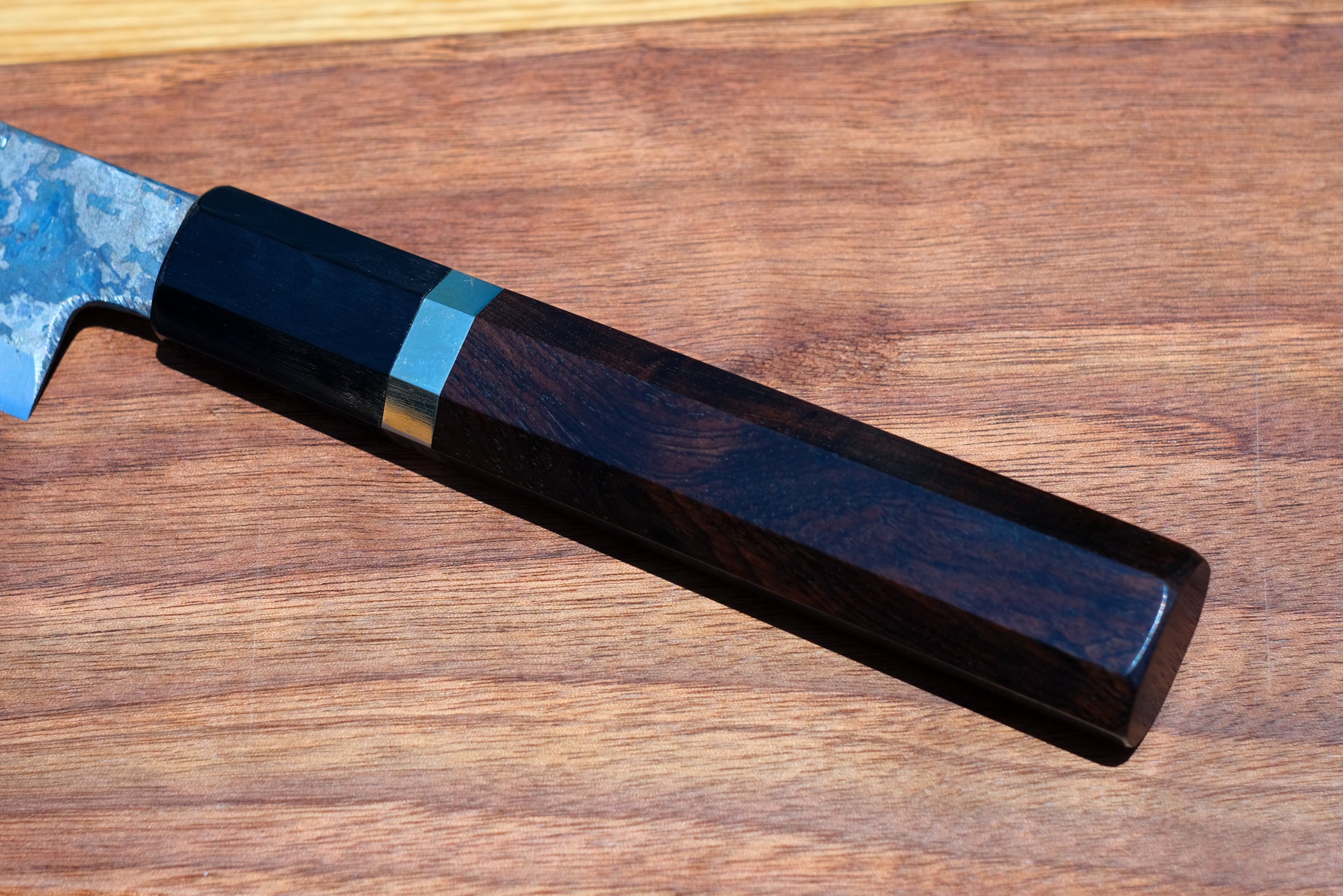 ハンドル部が高級包丁に使われる黒檀と水牛の角を使った特別仕様となっております。
