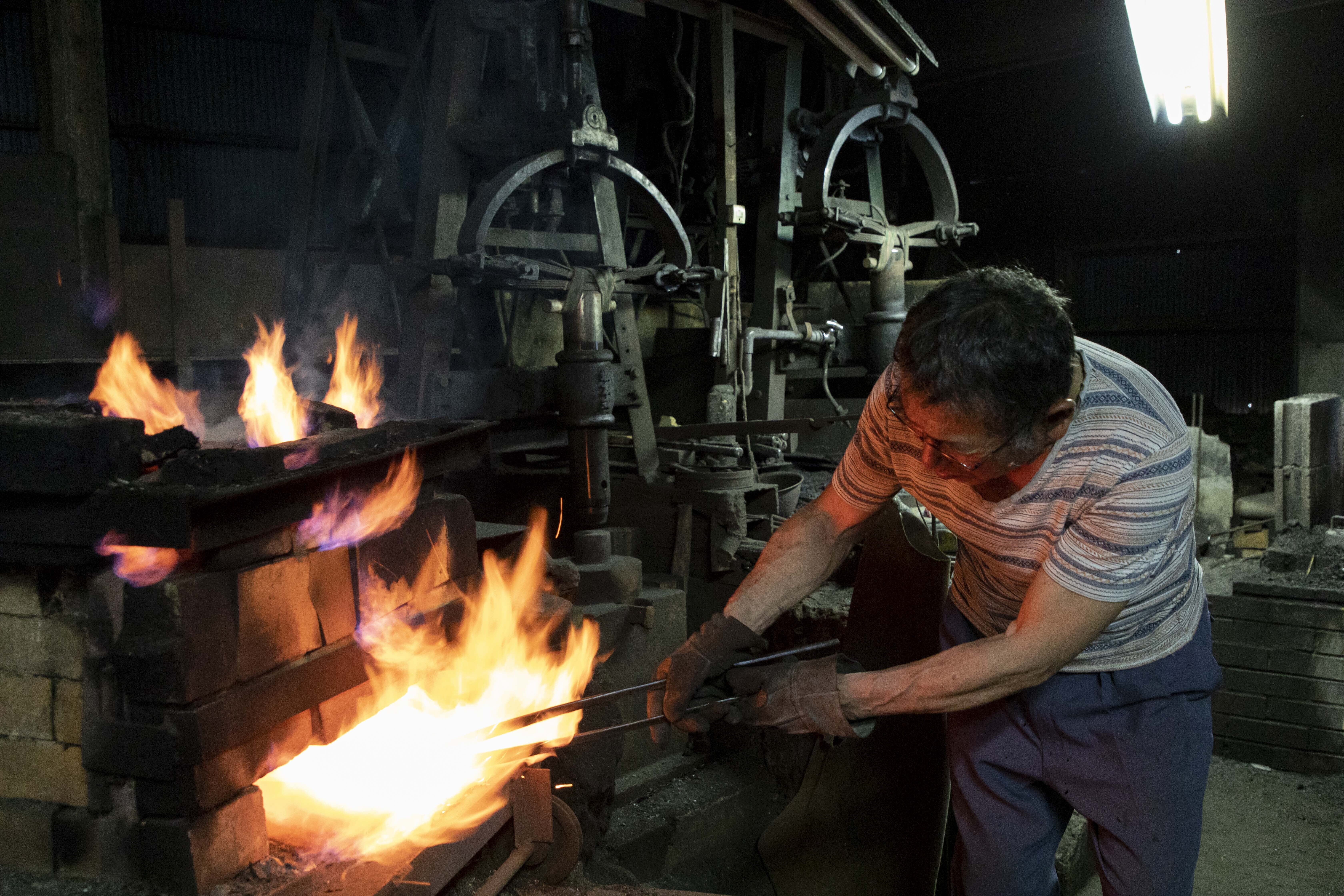ひとつのところで5人の刀匠がそれぞれの作風を生かしながら日本刀や包丁を製作しております。