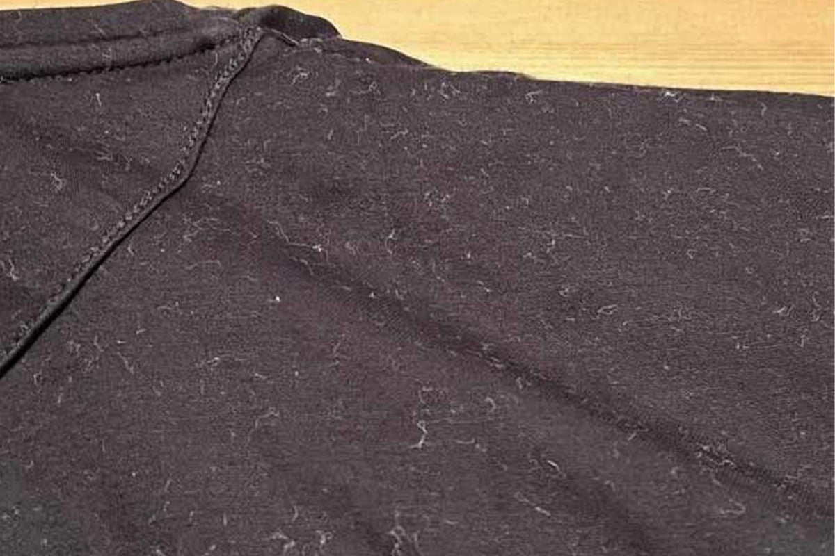 黒は言い換えれば最も明度の低い色です。そこにホコリがついたら当然目立ちます。スーツなどではこまめにエチケットブラシでホコリを落とすこともありますがTシャツにはそこまで気にかけていられないというのが現実でしょう。