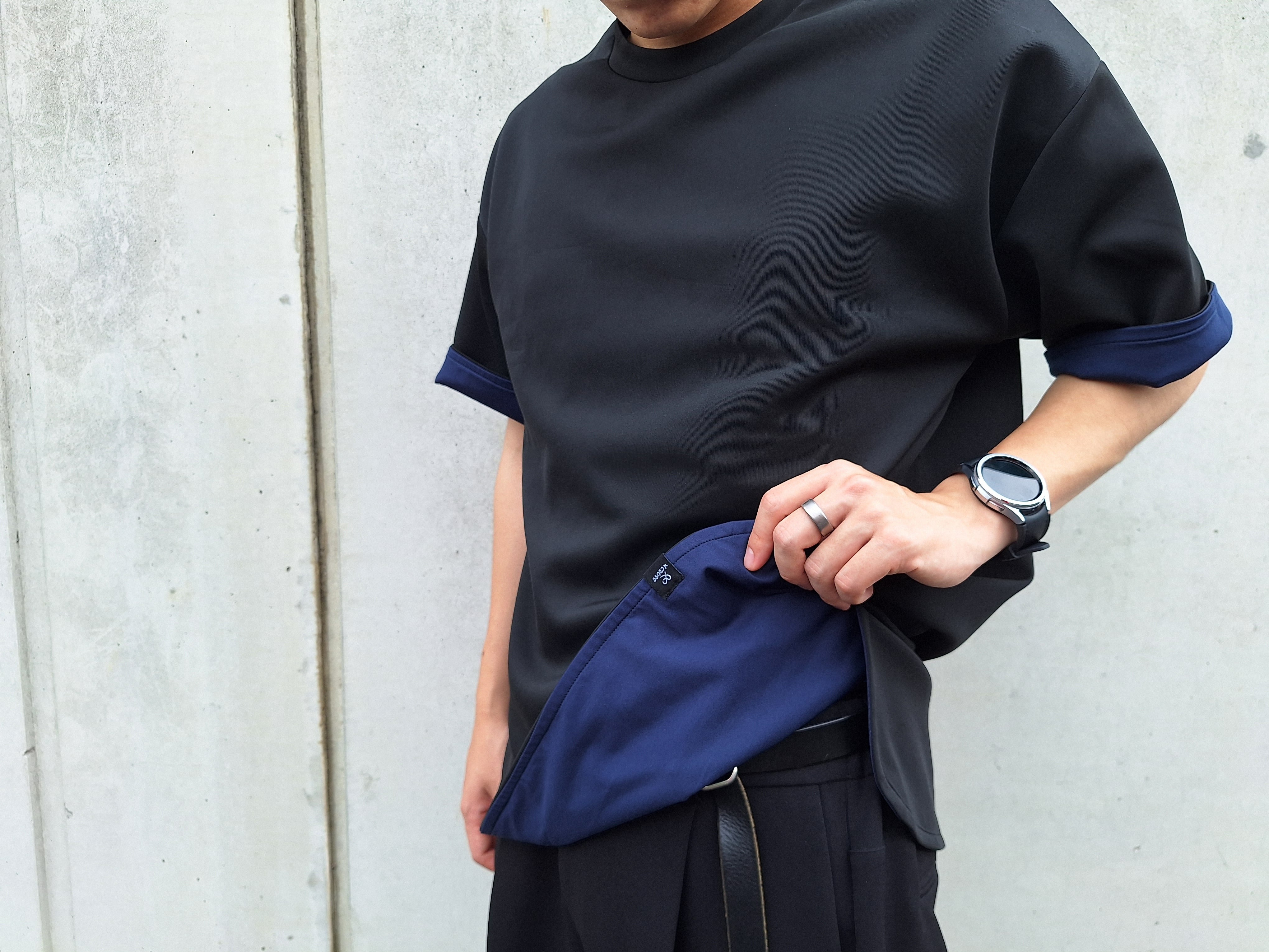 黒い服はシンプルでどれも似たような見た目になりがち。だからこそ形や小物でアクセントをつけられると周りと差が付きます。他ブランドですがヨウジヤマモトなどはその良い例だと思います。