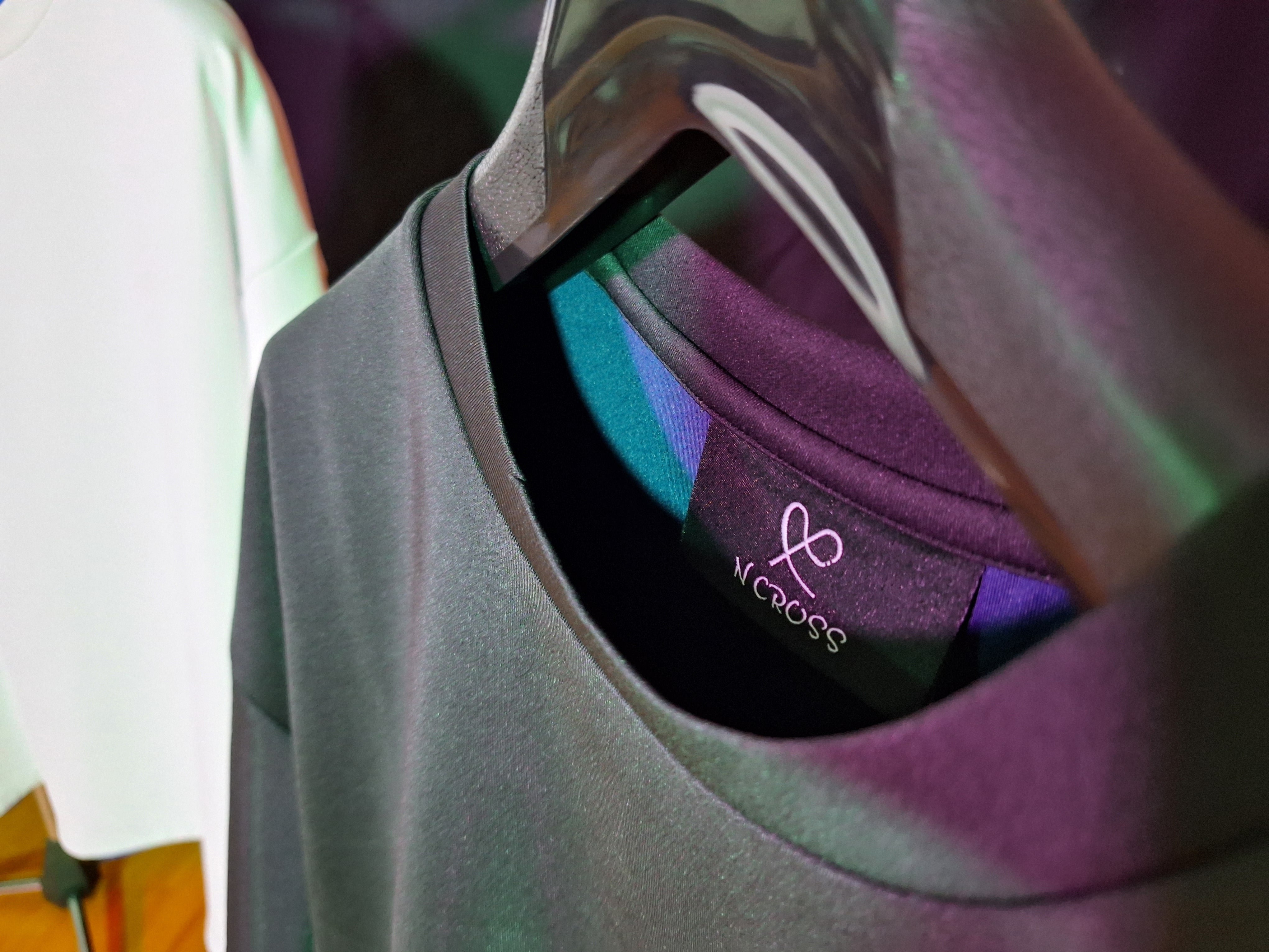 裏地に寒色系のカラーを使用することにより、Tシャツ表面の風合いもさりげなく涼しげな印象を与えます。