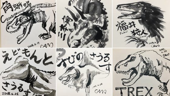 あなたのリクエストにお答えして色紙に恐竜を描きます。