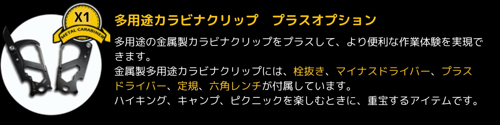 この手袋にはカラビナクリップが1つ付属します。