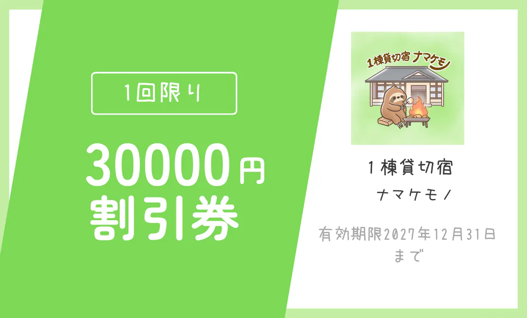 ▶早割【宿泊割引券】20,000円のご支援で30,000円分の割引券を送ります!