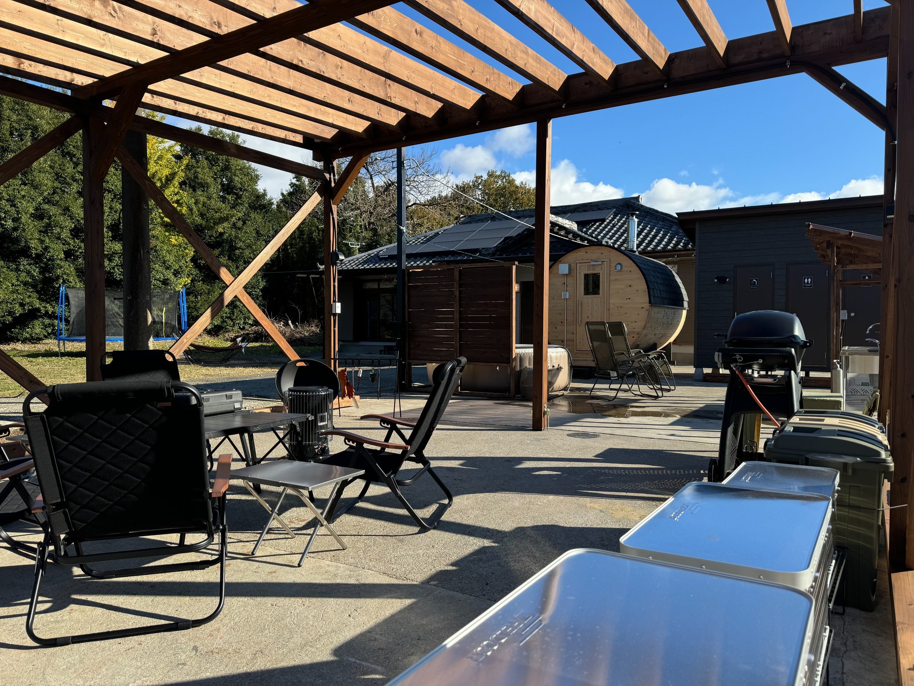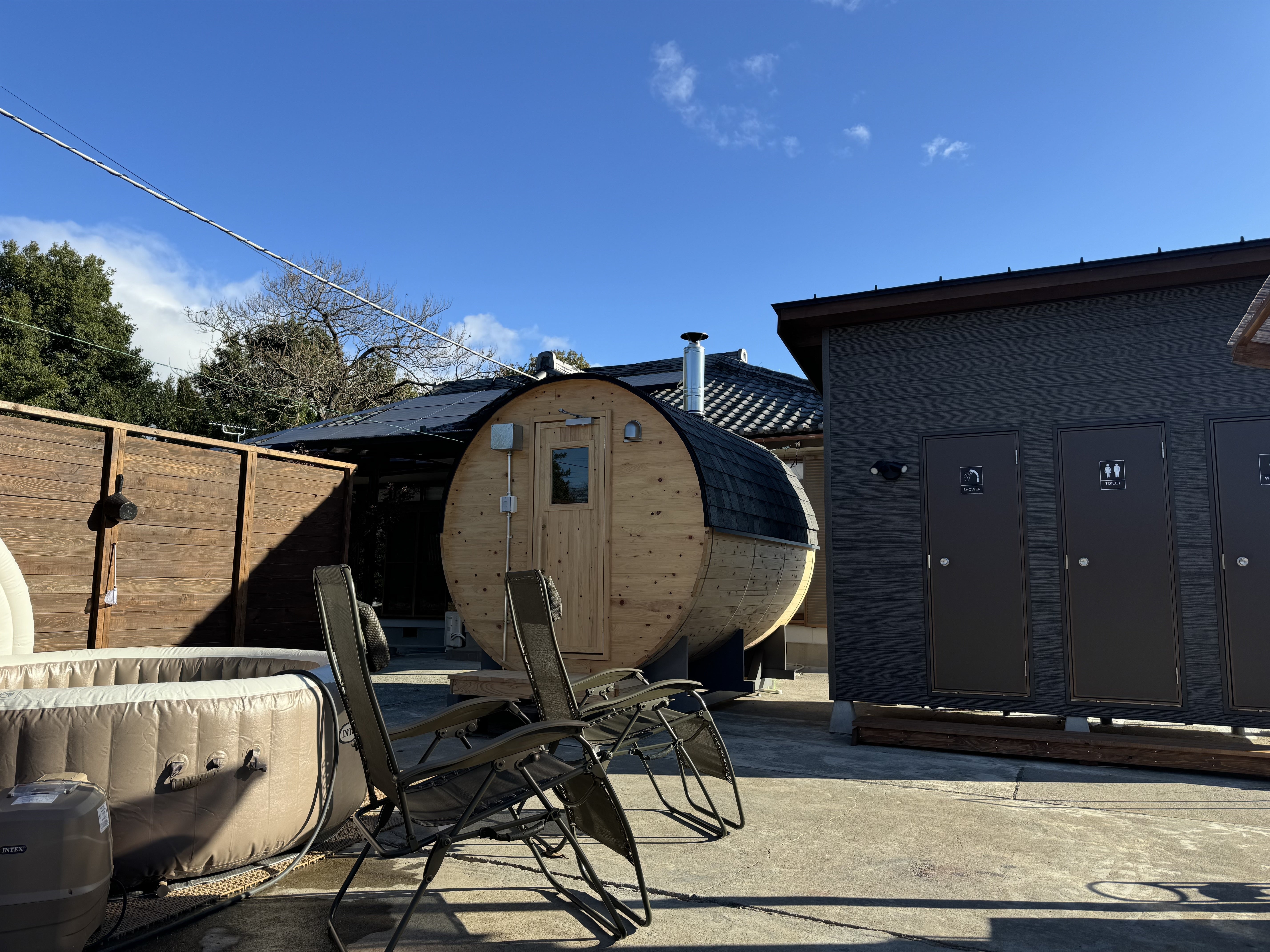 屋外にバレルサウナと水風呂を設置!
