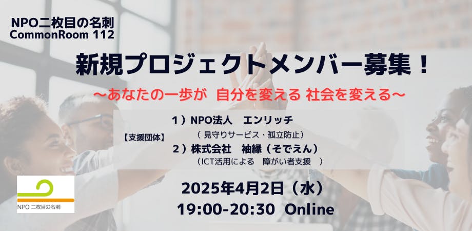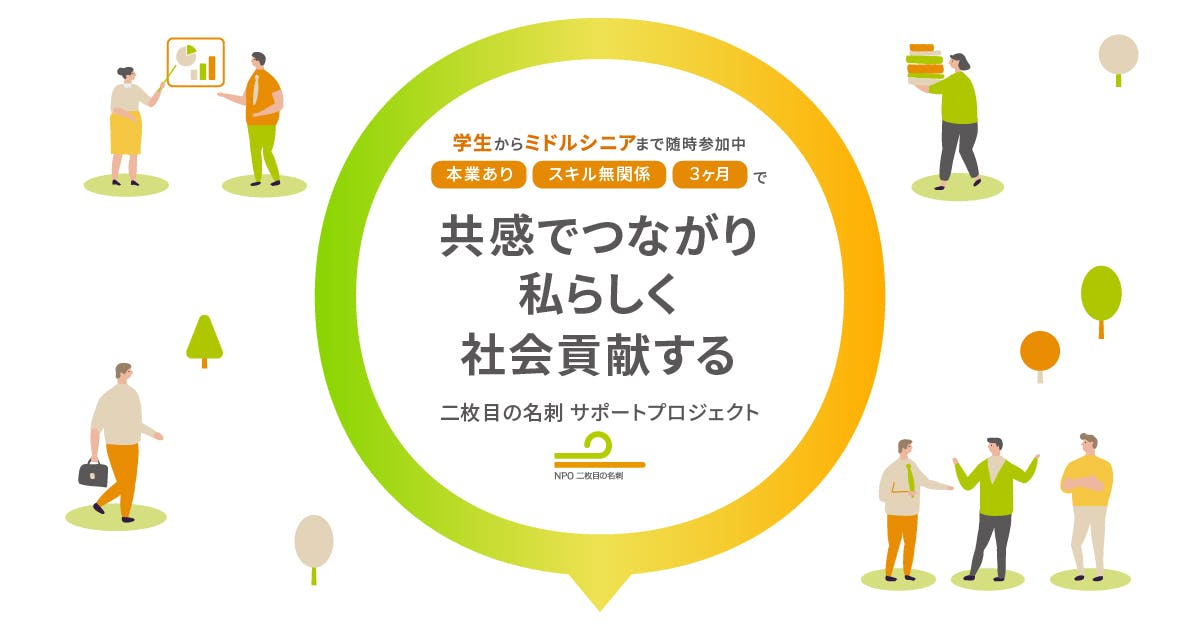サポートプロジェクト参加メンバーによる取り組み紹介のオンライン・イベントを2025年も開催します。学生からミドル・シニア、多様な職業の方の2枚目の名刺を持ったリアルなストーリーをお届けします!