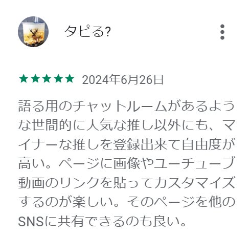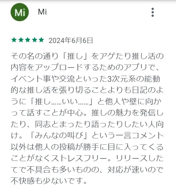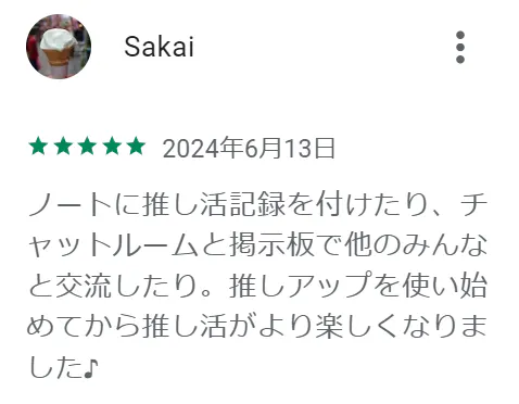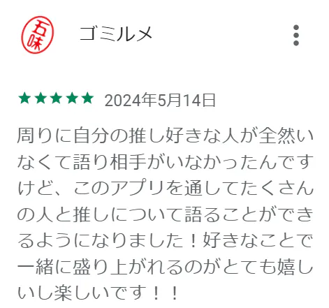 このアプリを通じて、推し活をもっと楽しみ、推しへの愛をさらに深めてほしいと願っています。