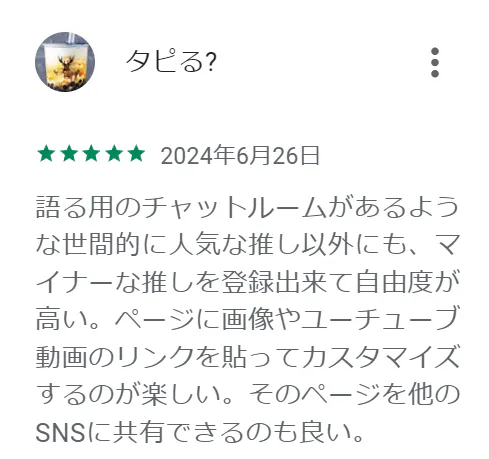 一人で楽しみたい方にも、推し友を見つけて一緒に楽しみたい方にもおすすめです。