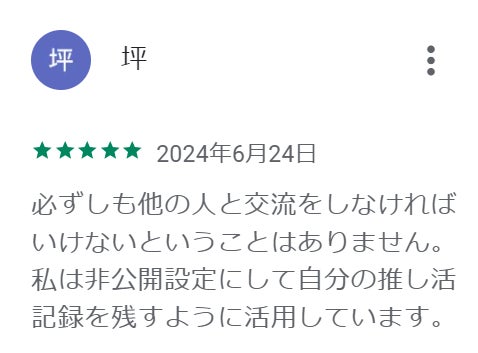 公開、非公開も選べるので、自分だけで楽しみたいかたも、推し友を見つけたい方も、布教したい方も楽しめます。